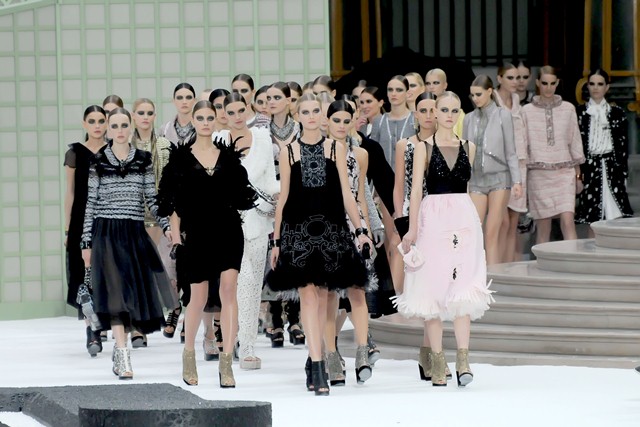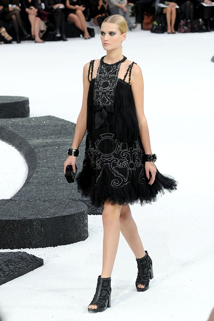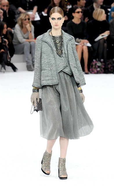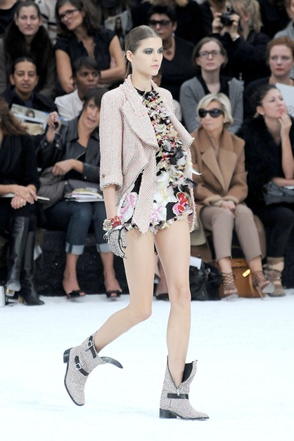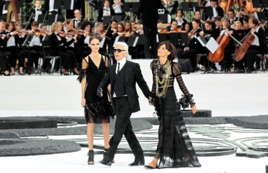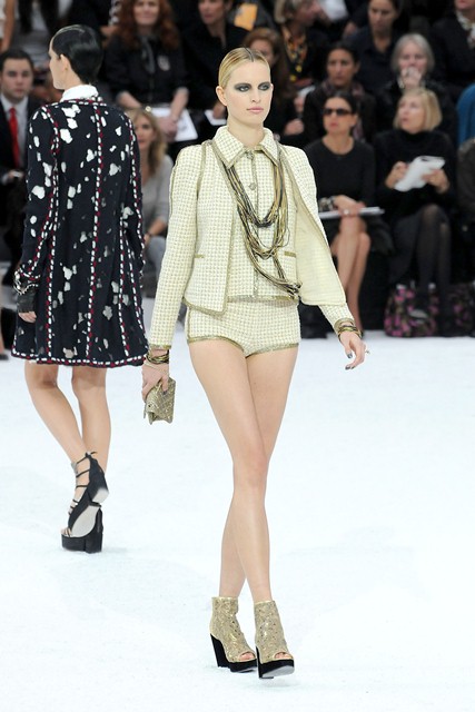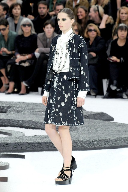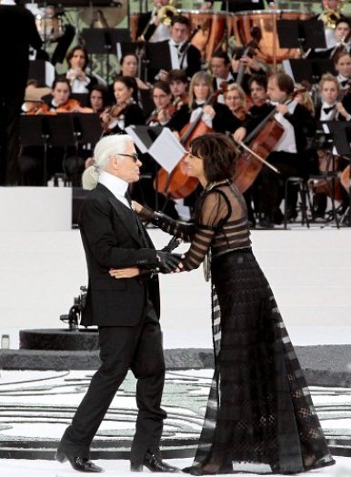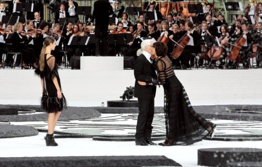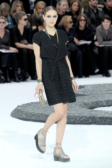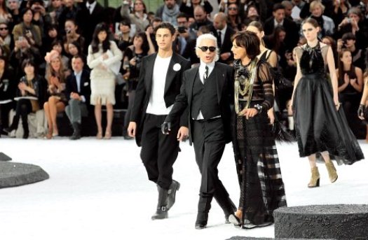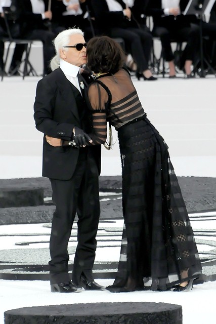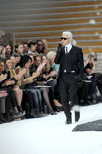 Today at Paris Fashion Week it was Chanel. And therefore Karl’s moment. You know, Karl doesn’t have small moments. It’s always a spectacle and he is always the grand prince. I really love when he makes his exit entrance. It’s really the definition of amazingness. Flanked by the incomparable Ines de la Fressange, unchanged after all these years, and of course his muse Baptiste, Karl celebrated his new collection – clothes most of us can only look at and dream about. I can’t stop staring at those black heeled open toe wedges in gold and silver. And... well... all of it.
