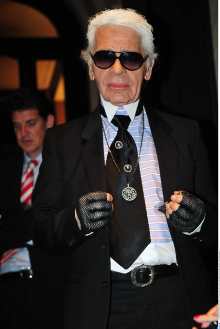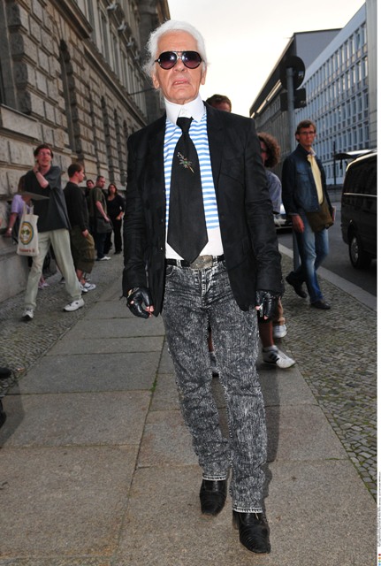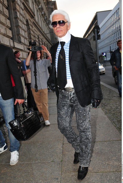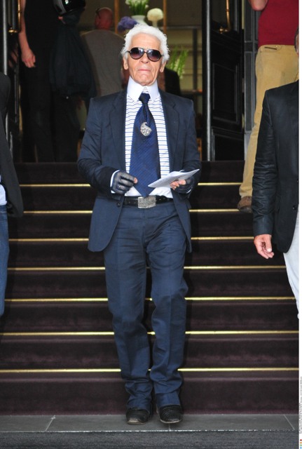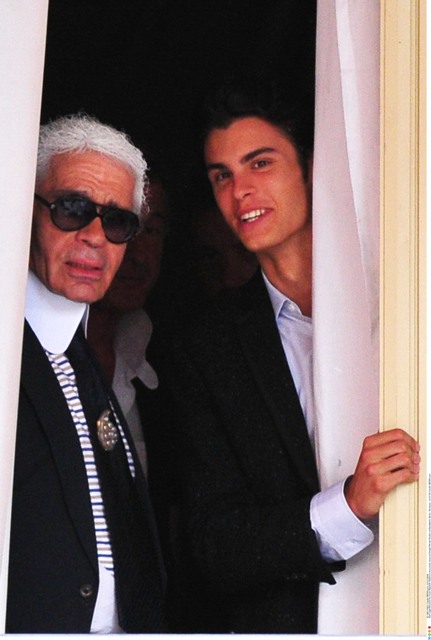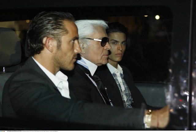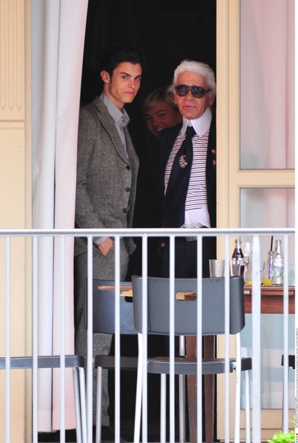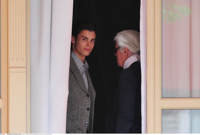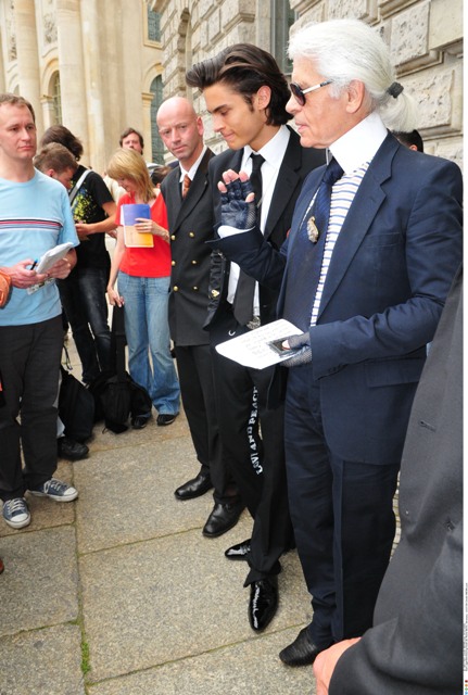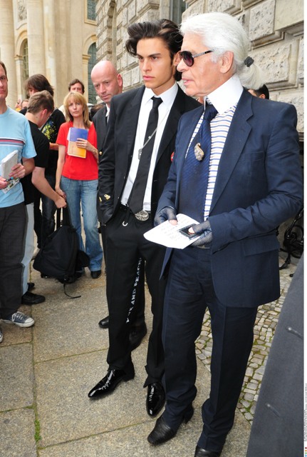 Check him out the other day in Berlin for an Elle Magazine photo shoot accompanied by his “muse” Baptiste Giaconi. Baptiste was also featured in that Barbie birthday campaign, remember? Anyway, in addition to providing Karl with inspiration – is that what it’s called now? – Baptiste is also his travelling companion.
