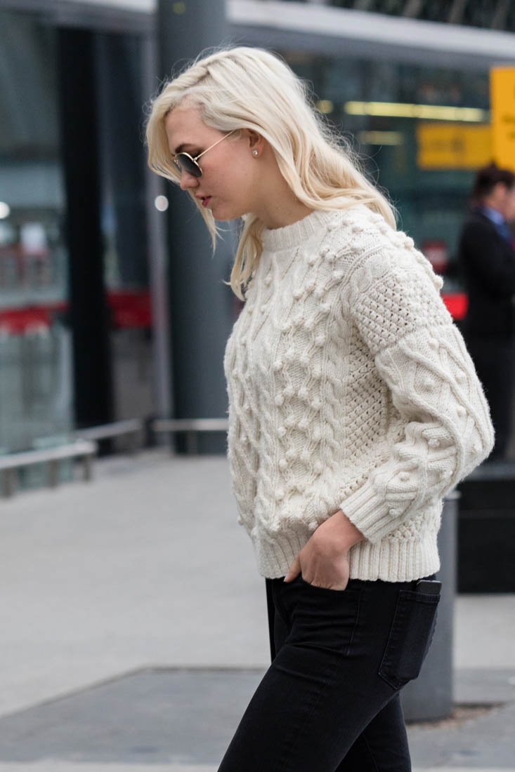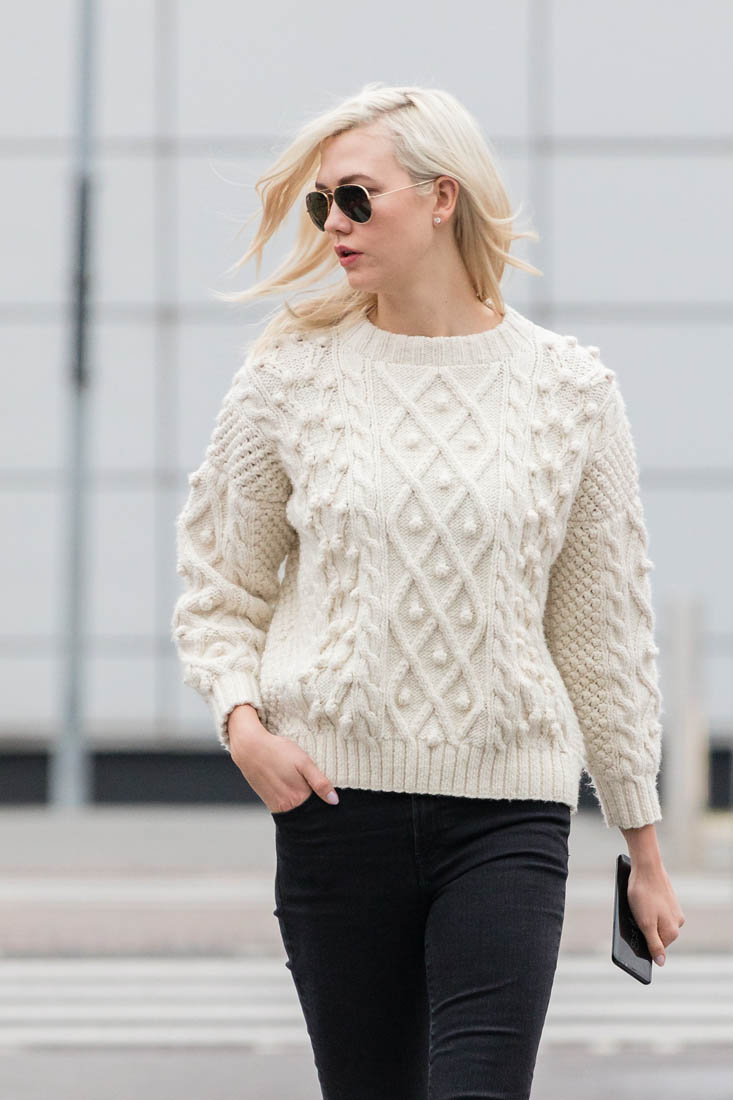 Here’s Karlie Kloss in a pretty good white sweater. Do you think it’s $600?