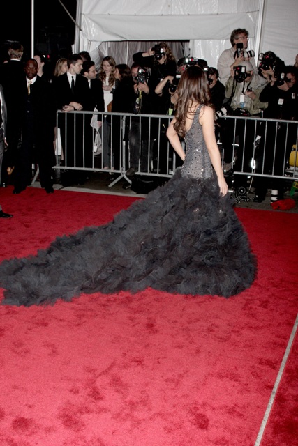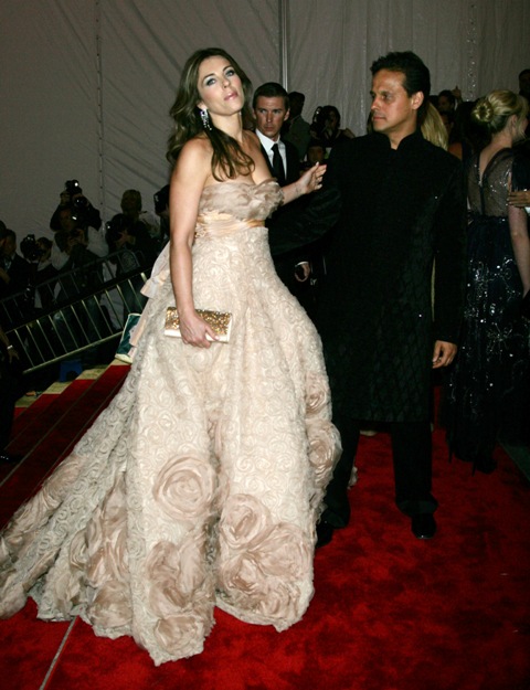 Elizabeth Hurley in Elie Saab. Um, yeah, it has roses along the hem. Oh wait, no, no… it’s has roses ALL OVER!!! And it needed its own Escalade. I am embarrassed for her. It was an embarrassing appearance. She would have walked by Kate Moss and Stella and they would have not attempted to muffle their snickering. They would be right.