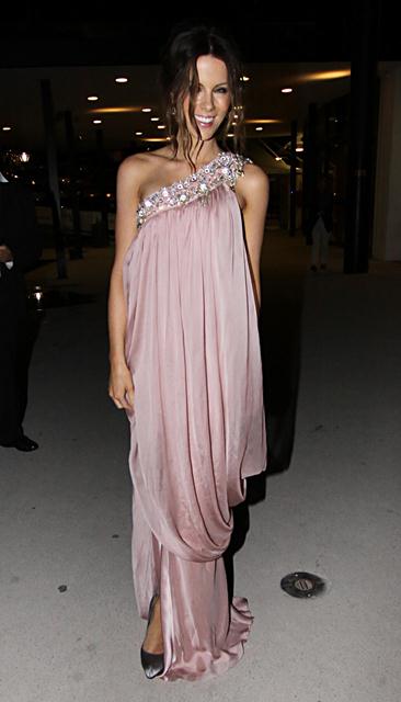 Can you imagine how happy Kate Beckinsale must be these two weeks? It’s virtually impossible, in theory, among so many tacky Euros, to OverDress in Cannes. Every night she’s in a new big dress and people want to take her picture. Every night she’s walking that carpet hoping so hard that it belongs to her. Last night was no exception. At the premiere of Biutiful, here’s Kate, the jury member, fronting like she’s actually a part of the film, in a gorgeous Balmain accessorised by her right leg. She’s not posing very well with that right leg. It’s not...centred enough. See? This just about sums her up. Always falling a little short.