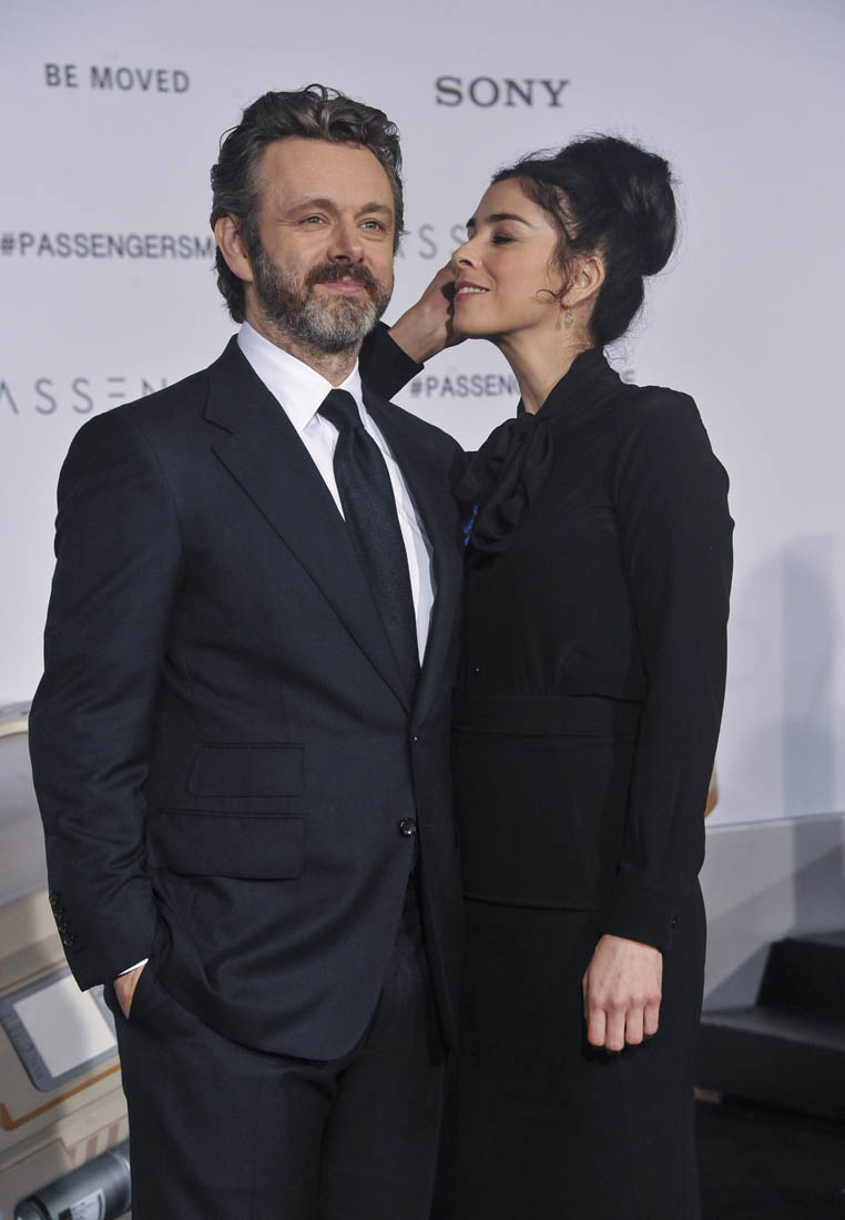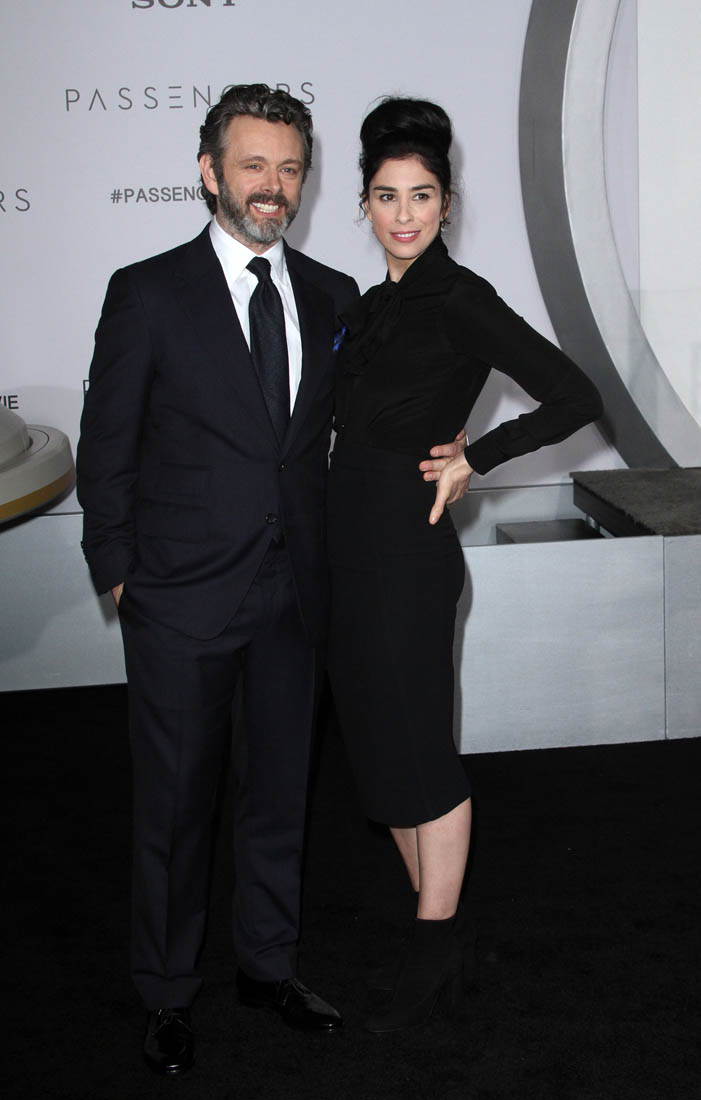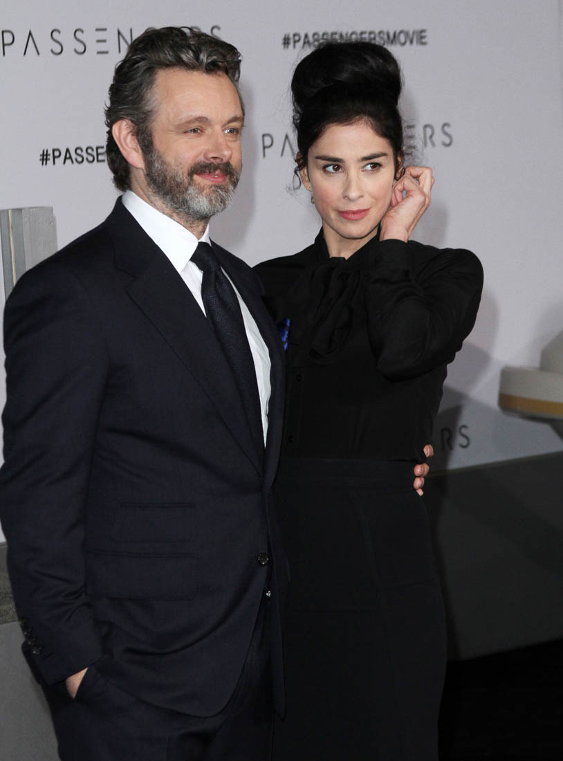 As for Kate and Michael, they’re so close that she’s close to his girlfriend, Sarah Silverman. They’ve all joked before that Kate prefers spending time with Sarah over Michael. Here are Michael and Sarah at the Passengers premiere the other night. They made it through this asshole of a year. Thank you, 2016, you f-cking piece of sh-t, for this small mercy.