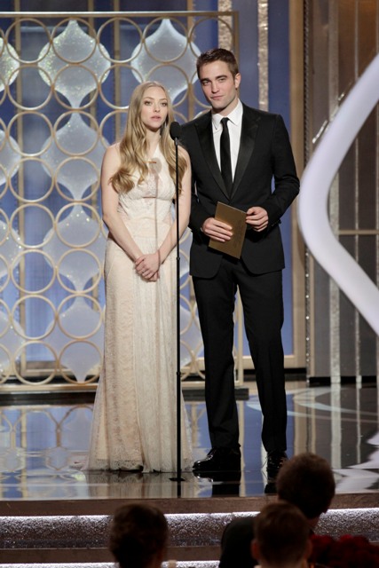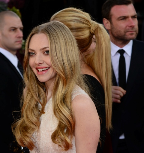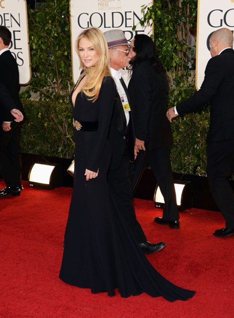 It’s an extra pain in my ass because I liked both the dresses a lot. Amanda’s is not my colour at all, but the tie-pin was nifty, and it stood up to Anne Hathaway hugging all over it in a flood of tears. (It did not particularly hold up to climbing down from Seacrest’s platform, but I’m willing to call that “beyond the scope of the job of the dress”, I guess.) Kate’s was absolutely lulu, but in the best way possible. She’s one of these women who, while thin, never worries me. It’s just how she is. But the gold plating combined with the long hair, and compared to Amanda Seyfried by me against her will in this article, she began to look kind of mutton dressed as lamb, you know?