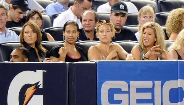 Kate Hudson is a Yankee WAG front and centre, reflecting her boyfriend’s history of spotlight whoring. The relationship mirrors his reputation.