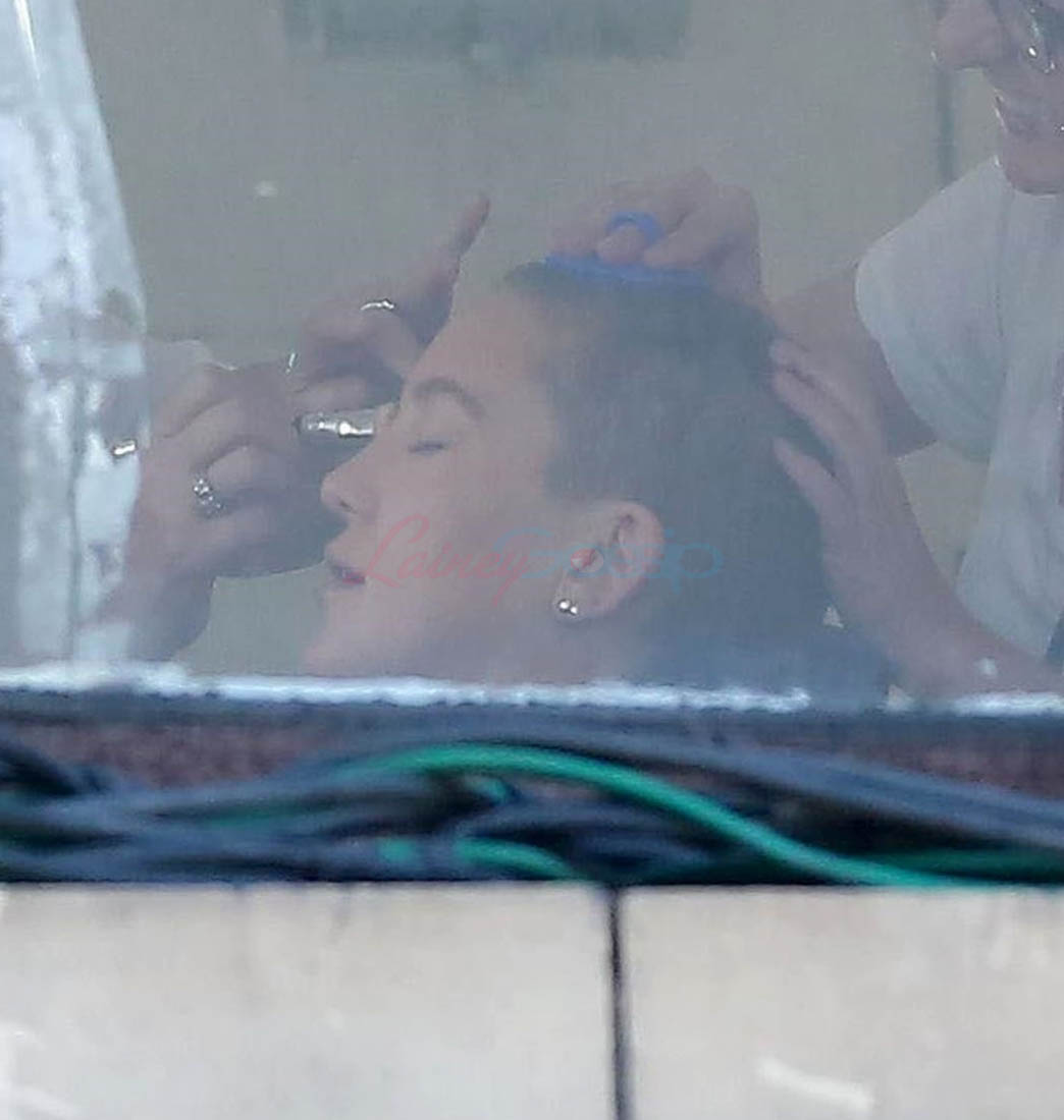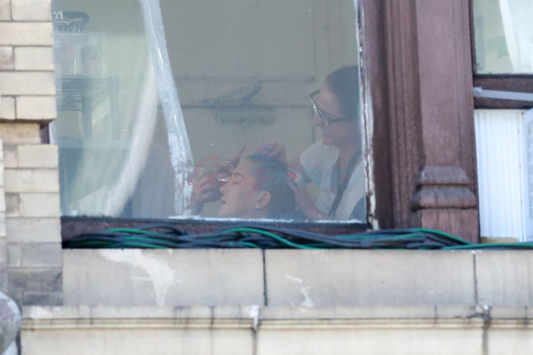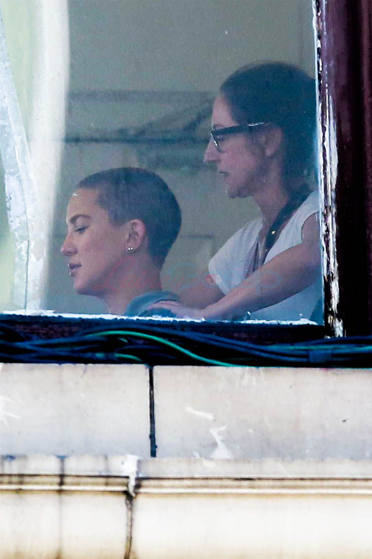 The big story so far is that Kate’s role requires a major makeover – she’s shaved her head. Here she is on set yesterday in the makeup chair with her head buzzed and a lot darker. Which, obviously, will be one of the major talking points whenever they’re ready to start talking about the movie. Kate Hudson’s had pretty much one “look” her entire career – the hair, the dress choices, the entire style profile, there’s never really been that much variety. So I’m excited to see how the hair change might give us, finally, a new Kate Hudson vibe. That said, prepare yourself for the inevitable, eyerolly “brave” description to refer to her cutting her hair. Some asshole is going to do it for sure.