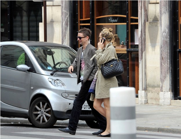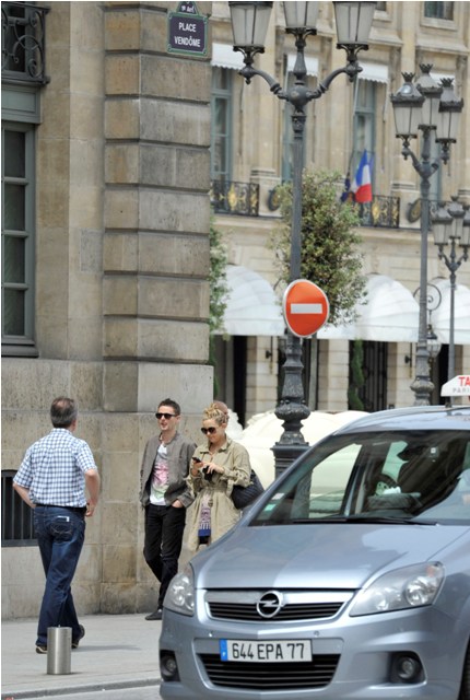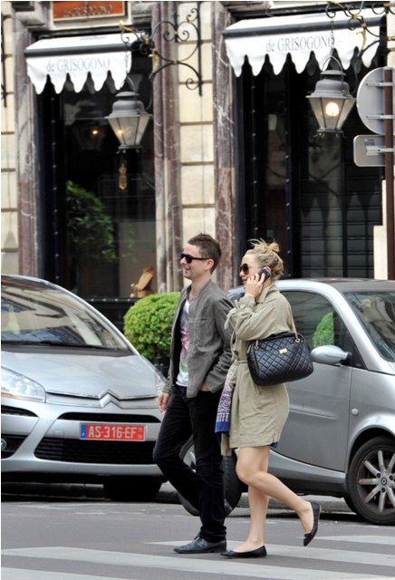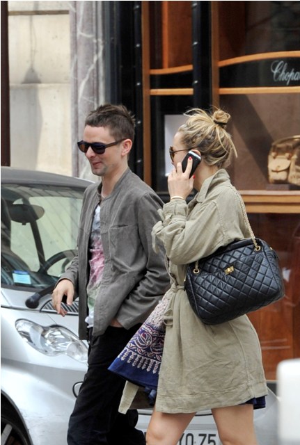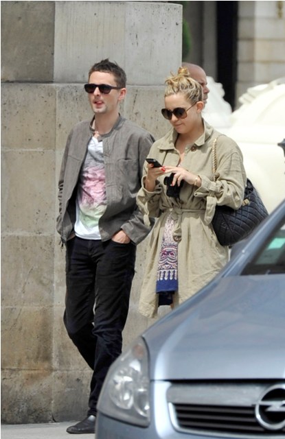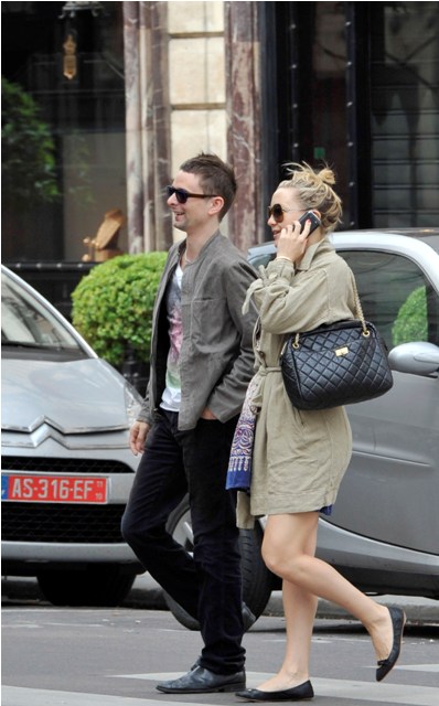 Kate Hudson flew to Paris this weekend to support her new boyfriend Matt Bellamy, lead singer of Muse. Of course. Girls like Kate always date boys on the rise, never boys who have already crested. Here they are on a stroll yesterday making the fan girls very unhappy. Apparently Kate is not a popular choice to be his official gf. But they clearly don’t know Manslinger’s track record.