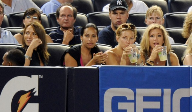 This is Kate at the Jays/Yankees game last night sitting with the other Wives and Girlfriends, appearing to have completely assimilated into the circle. That’s one thing about the Manslinger. Unlike Victoria Beckham, she is indeed a girl’s girl.