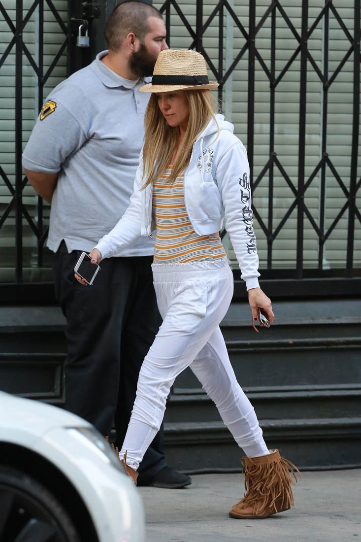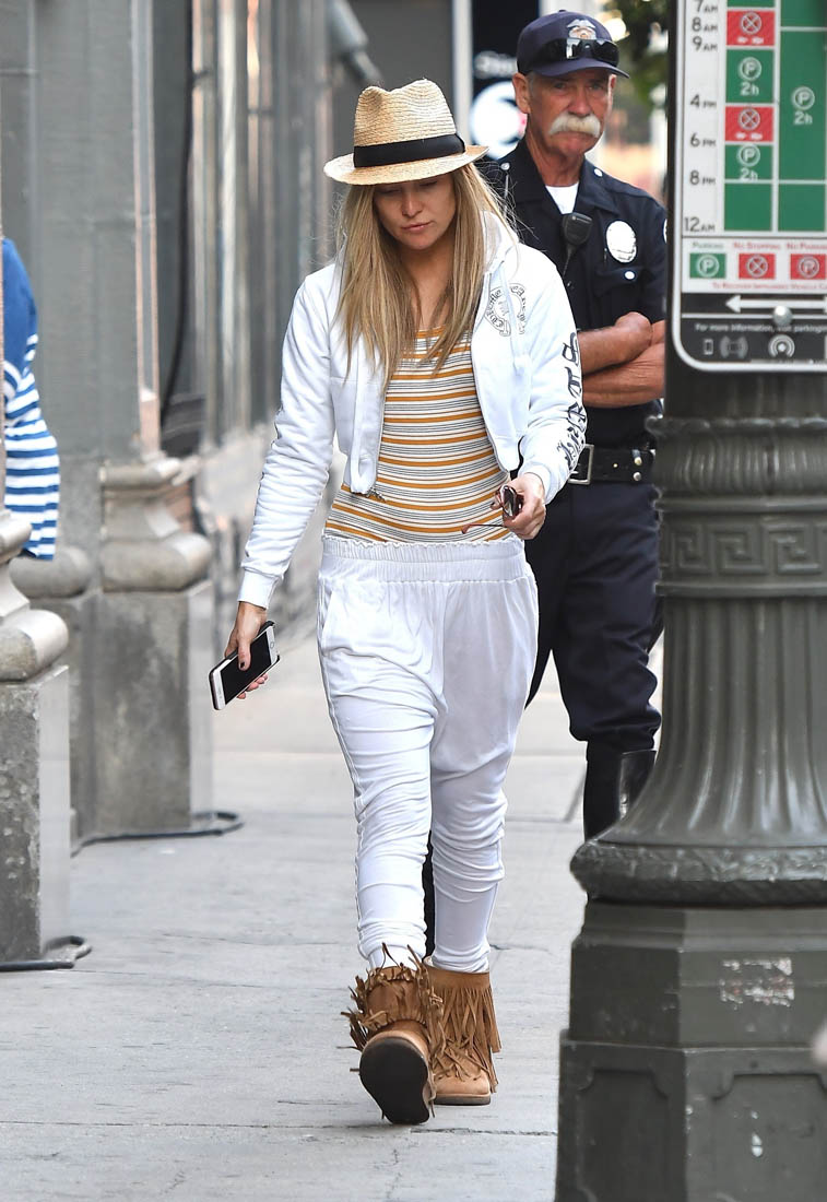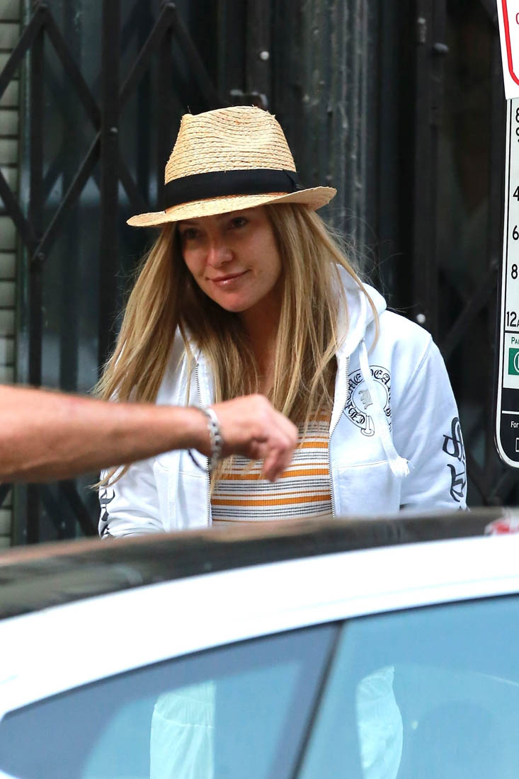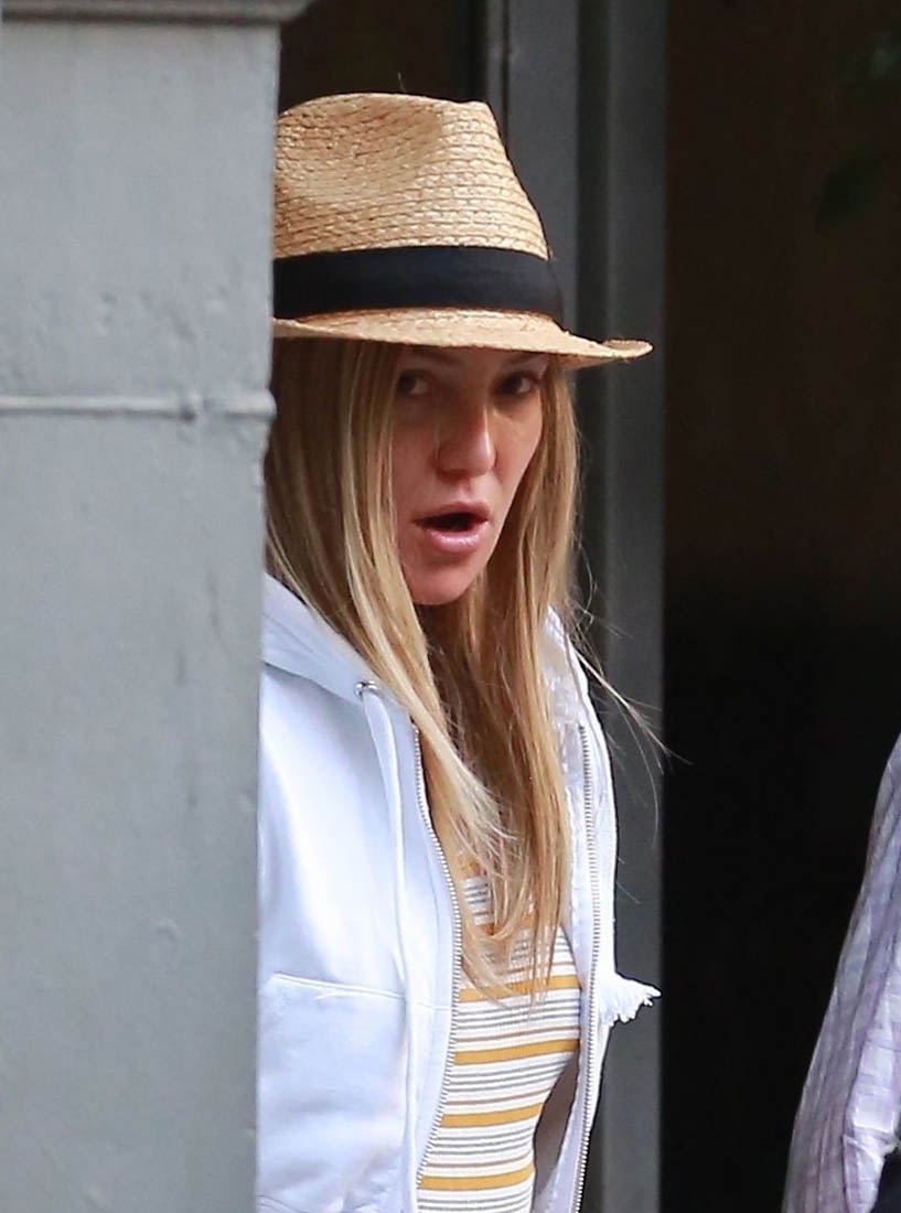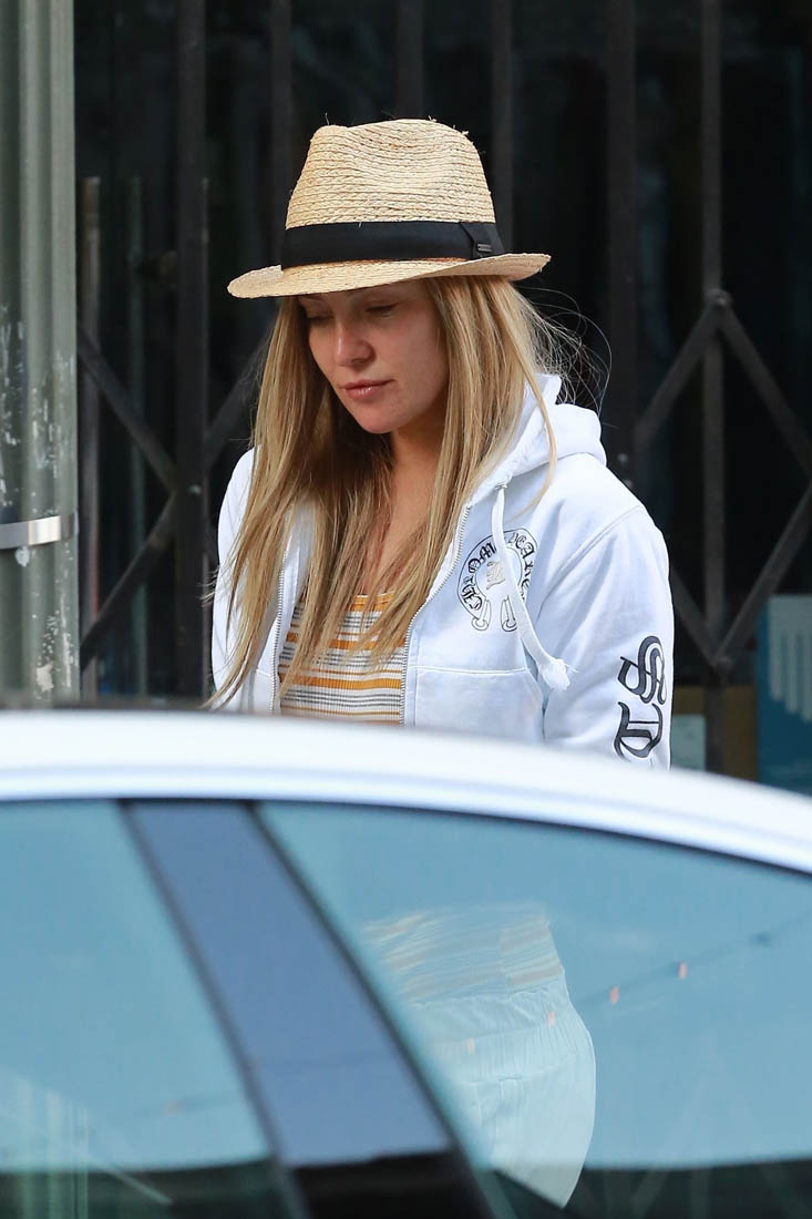 Kate Hudson was photographed leaving the set of Sia’s film, Sister, yesterday wearing a blonde wig. We know it’s a wig because Kate recently shaved her head for this movie. So far we haven’t gotten any great shots of Kate’s new look. I posted a few pap pictures a last week that gave us an idea of the great shape of her head and she and Sia have shared a couple of photos on Instagram …
