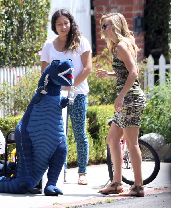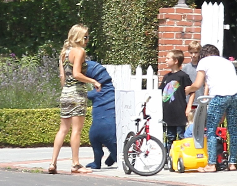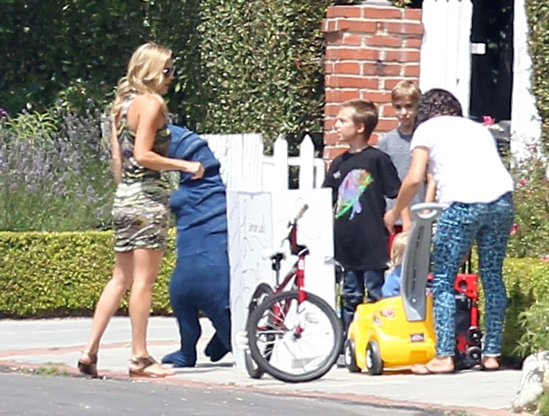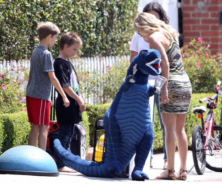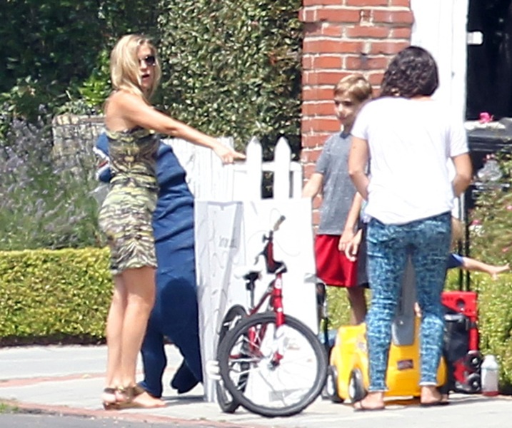 Kate Hudson stopped by her son 9 year old son Ryder’s lemonade stand yesterday. Ryder has to sell lemonade to save up for his new bike/skateboard/ballet shoes/whatever! Also, do blue dinosaurs make people thirsty? After patronising her young entrepreneur, Kate went to work at the premiere of Larry David’s Clear History. Clear History premieres on HBO on August 10th. F-ck me I hope my television arrives in time for that. Not so much for me but for Jacek. Larry David might be the comedic mistress of his life, after his comedic wife Will Ferrell. There are times when I’ll just find him, on the couch, baked, weeping over re-runs of Curb.