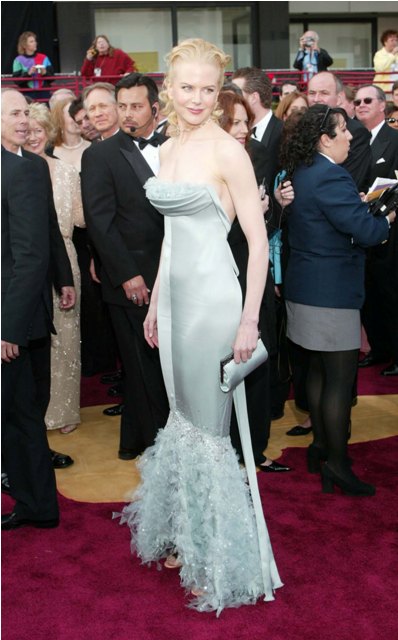 In the meantime, this white dress, the material – what remarkable material: it doesn’t fold, it doesn’t wrinkle, it’s like some NASA sh-t cut into a dress. And to Michelle it looked familiar. Michelle remembered Nicole Kidman. And so it was.