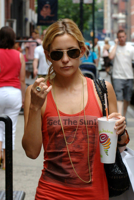 As any girl who suffers from large breast affliction will agree – I’d exchange mine for Kate’s any day. An A cup is my dream. We all want what we don’t have and in my humble opinion, clothes look way better on the modestly endowed. There is nothing I curse more than the disproportionate size of THEM vs everything on my body. And even though, compared to some, a harmless C might not be so offensive, it certainly is to me. Especially when in some circles I’m considered an Asian freakshow. Which is why all I’ve wanted my entire life is to walk around looking like a board. Anyway, take a look at Kate Hudson out and about NYC, taunting me with her little bubbies. Sigh. A perm and a breast reduction – the two terrifying frontiers of my life. Photos from Gossip Rocks