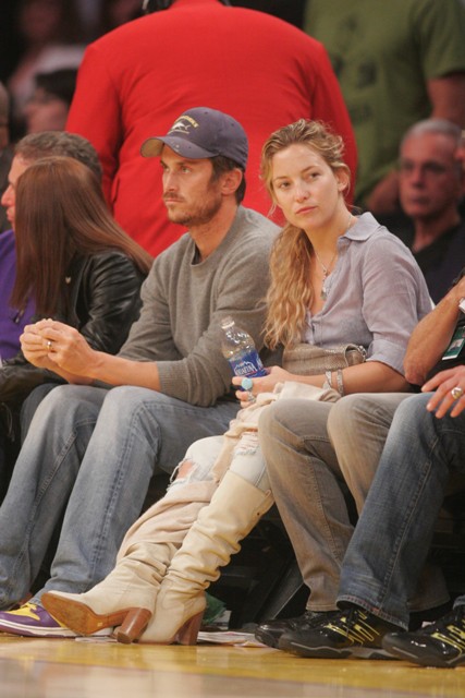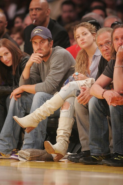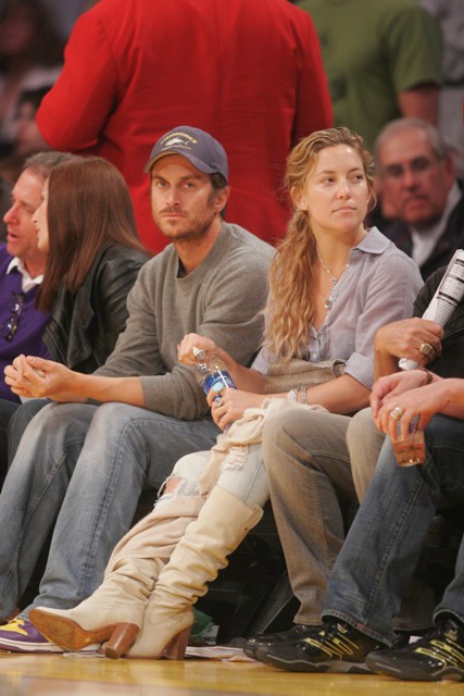 Kate Hudson with her gorgeous brother Oliver at the Laker games last night and not a trace of makeup. Compare and contrast with that mutt-faced Tori Spelling and her golddigging loser of a husband Kevin Federline Jr. Her blush looks like a f-ckin’ bruise!