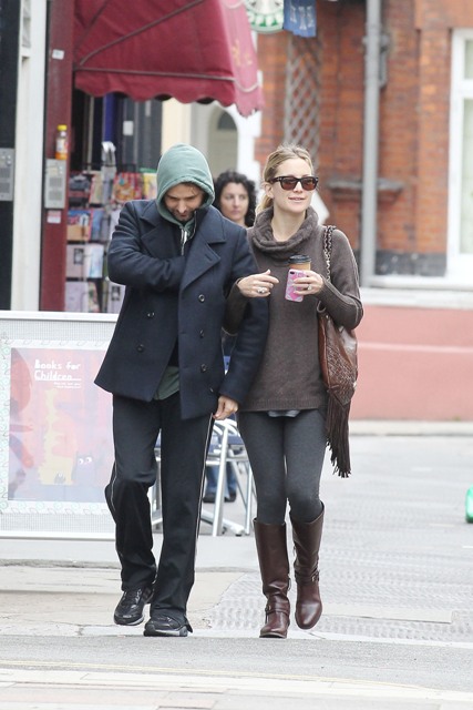 Kate Hudson and Matt Bellamy went out for a walk today in London. Cute, right? I like her ring more than Jessica Biel’s.