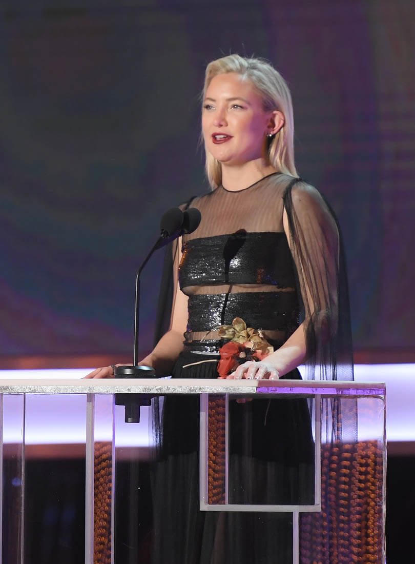 Kate Hudson has had a familiar red carpet lookbook over the last few years. She shimmers. She does it with her twinkling laugh, the cute way she crinkles her nose, and an endless parade of similar dresses: predominately pale tones, cut-outs (like here and here), and deep cleavage (like here and here). Occasionally she will switch it up and try pants or a bolder color, but there’s always a little bit of skin showing, which I guess is just good business sense when you own an altheisure brand.