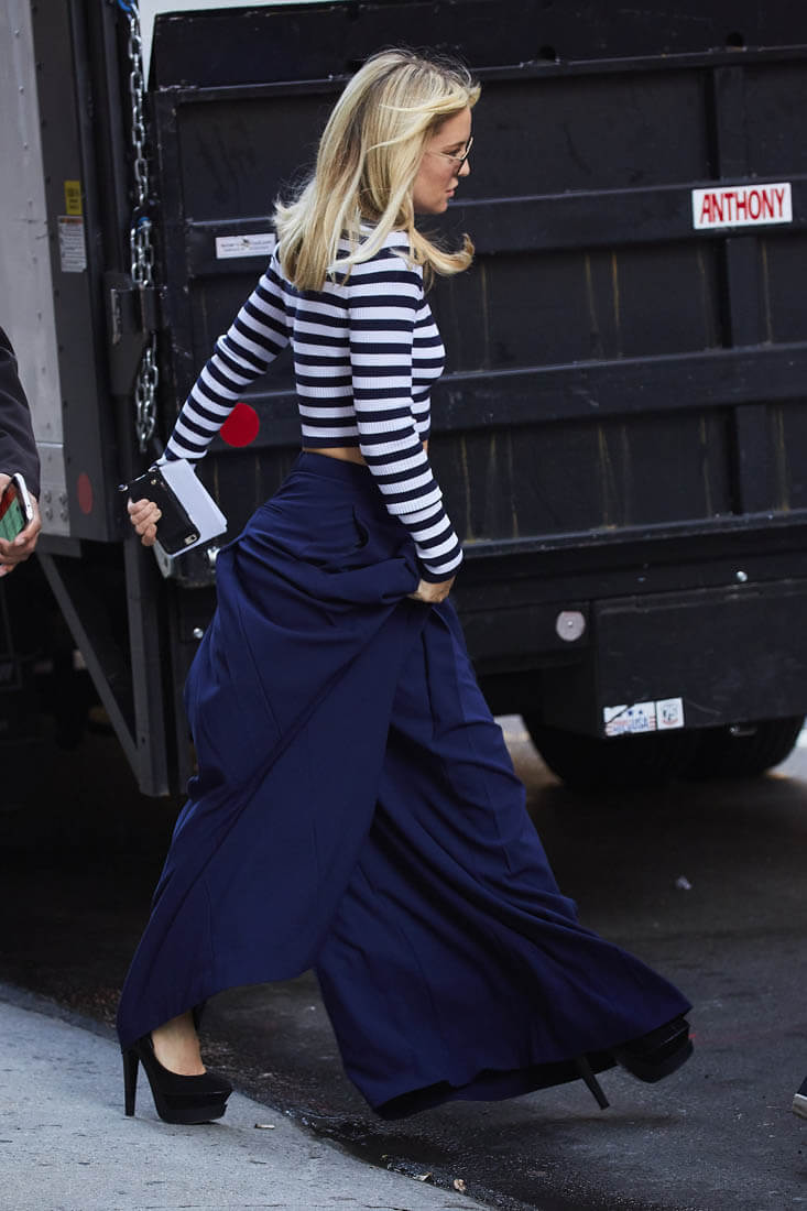 For me it’s the pants. These are great pants – high waist, flat split front, and the legs wide enough so that it’s almost a long skirt. And that’s key, the way it’s cut to look like it could be both. Because I don’t think you need to be tall to wear them.