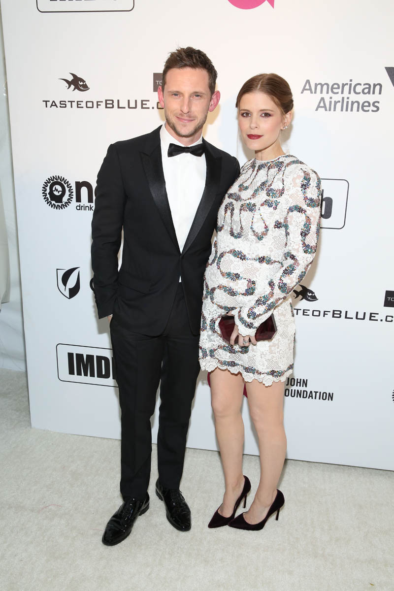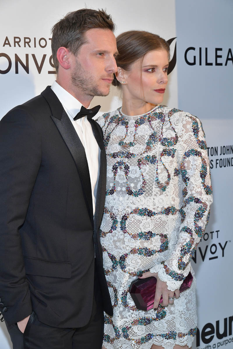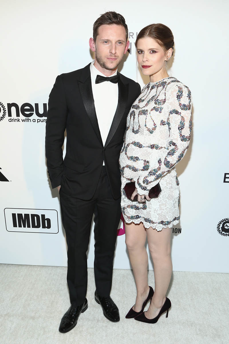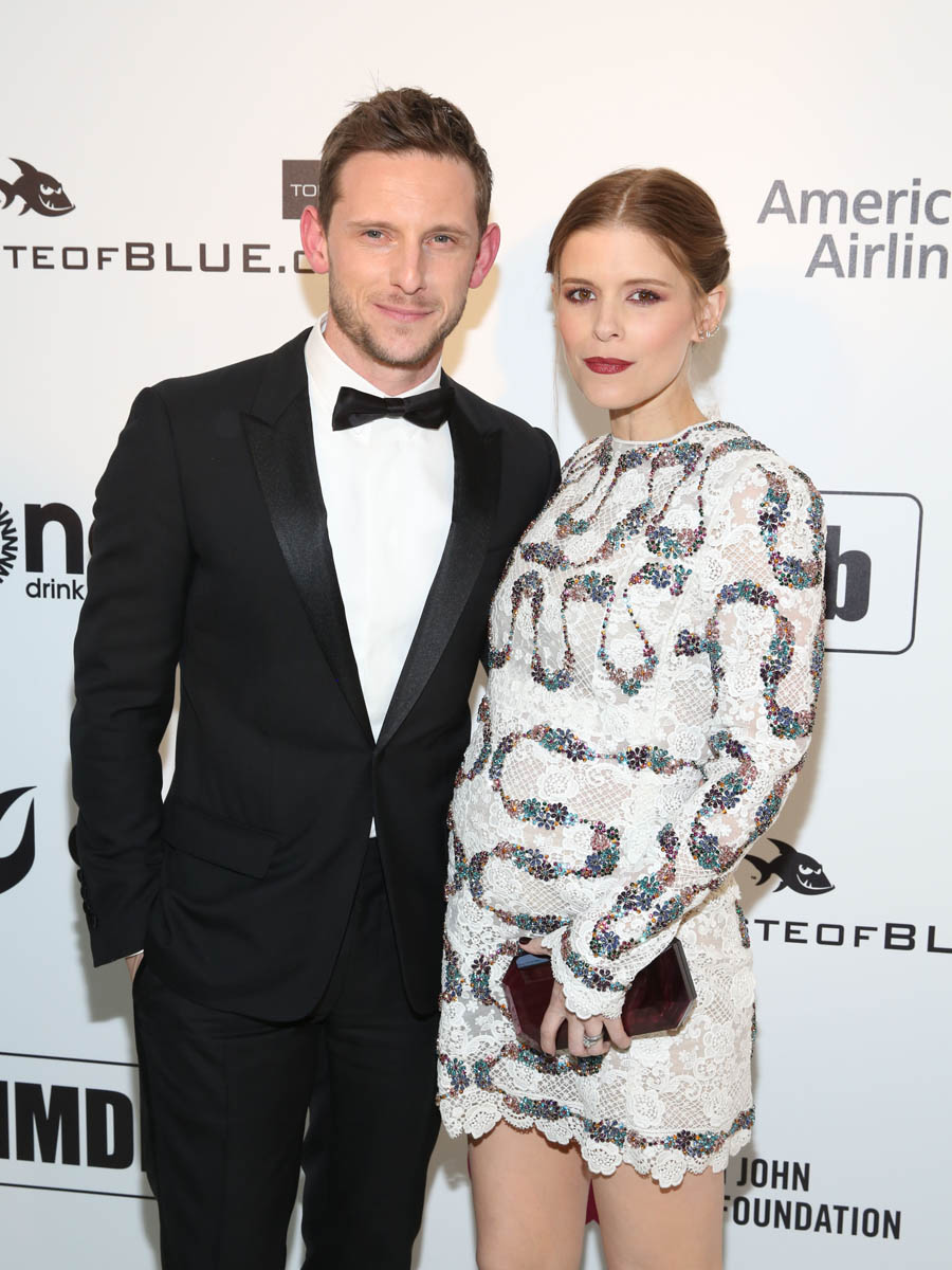 Kate Mara prefers to share her personal and relationship milestones on her own terms. And when she does, we get just a taste. When she and Jamie Bell tied the knot about 18 months ago, the wedding snap caption read simply, "Nuptials." And now, she's confirmed she's pregnant with their first child together (and her first) at the Elton John Aids Foundation Oscar viewing party on Sunday: