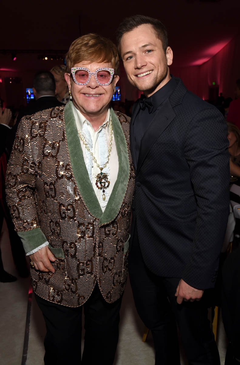 Anyway. Unlike Bohemian Rhapsody, Taron does all his own singing in Rocketman, without any layering or lip syncing. And our first glimpse of that came at the bash, when Elton and Taron took to the stage to perform a live duet of “Tiny Dancer.” It was a pretty stellar rendition. Between that and the Rocketman teaser that aired during the Oscars, this movie is definitely cashing in on any goodwill it can and is intentionally pegging itself to awards season.