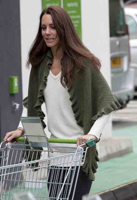 For starters, I guess she goes for groceries. In skinny jeans, a sweater, and, always, wearing that famous engagement ring. I would be afraid to walk around with it like that, especially at the Waitrose. You know when you buy meat and sometimes the meat juice leaks out of the plastic? I wouldn’t want to get meat juice on that ring is all I’m saying.