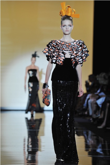 Just reviewing the pictures from the runaway and every look came with a head garnish. Kinda like... a British wedding? Inspired by the one on April 29th?