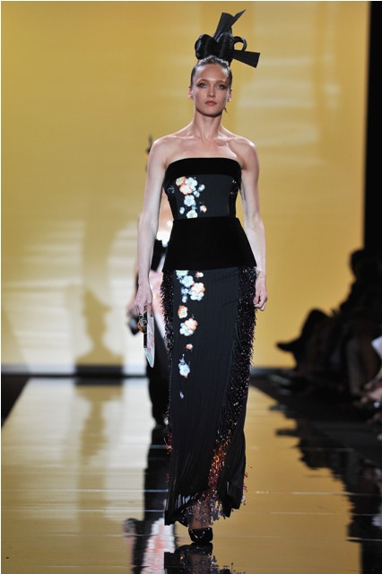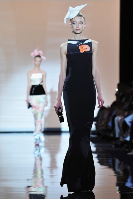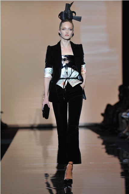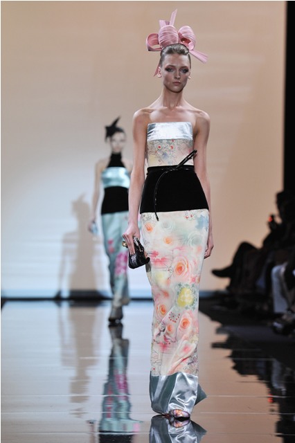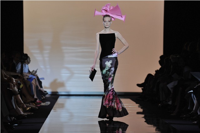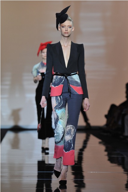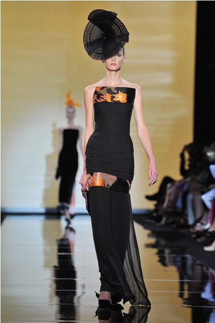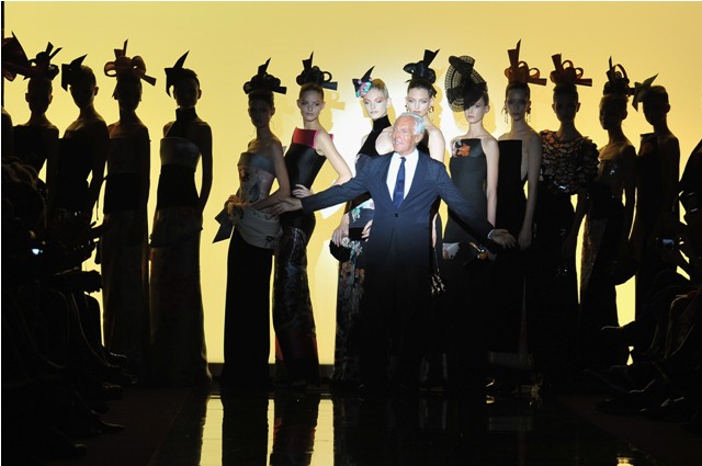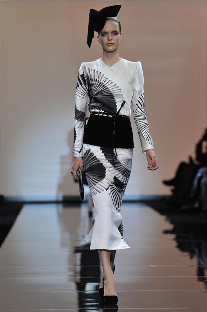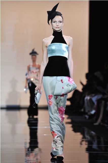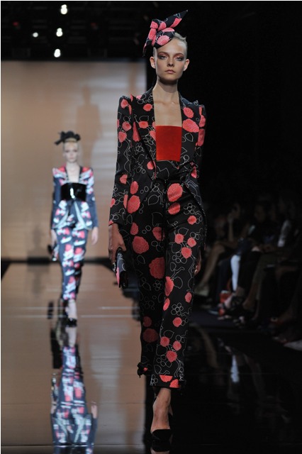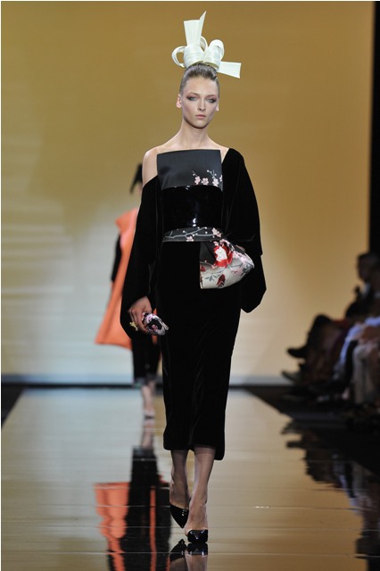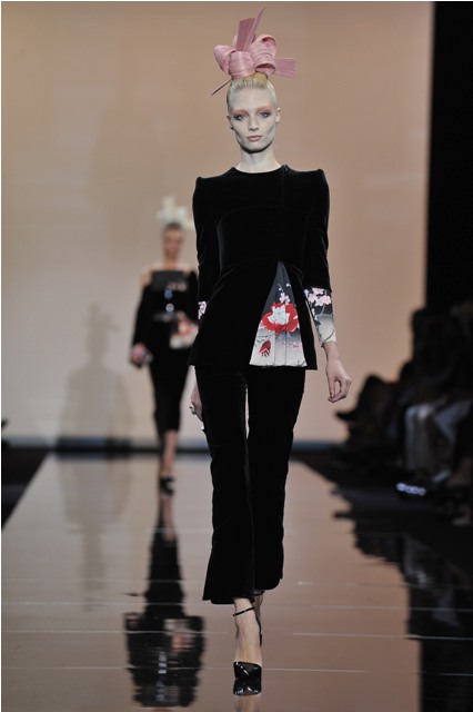 Check it – dress after dress, model after model, accessorised by a hat/fascinator situation, with a little bit of Asian hostess flavour. You into it? The head situations, yes. The clothing... meh. If you’ve been reading my column for a while, Armani doesn’t make me want to punch myself in the face from excitement anymore. This... this dangerously approaches Chinese Mall territory, at least to those of us who frequent the Chinese Mall.