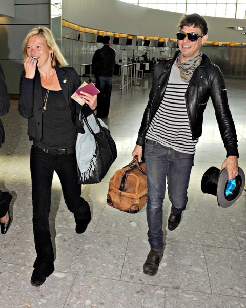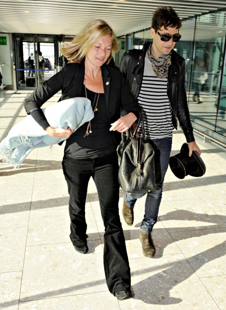At the airport today with Jamie Hince (still can’t believe she hasn’t got back with Pete Doherty) headed for LA. Shorter hair, fresh face, and a smile… looks good on her, non? Wonder what she’s so happy about. Do a bump in the Rolls? They were dropped off in one at Heathrow. Talk about extra.
