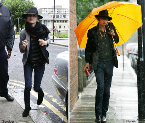 Thanks to the brilliance of the British, the same observation is being made about Kate Moss, now looking and more and more like Pete Doherty, sharing hatwear and caved noses, but also pulling the same thing back with Johnny Depp and Jefferson Hack – see attached.