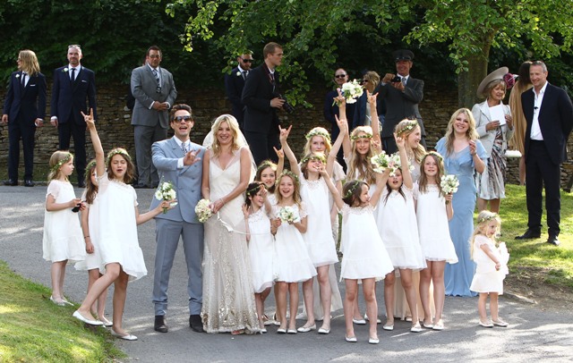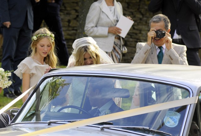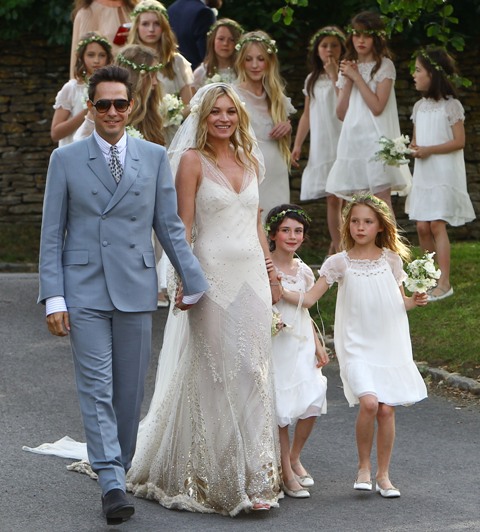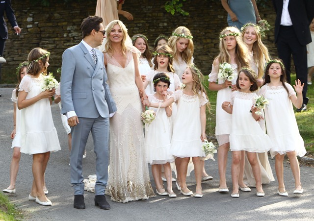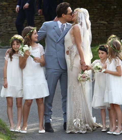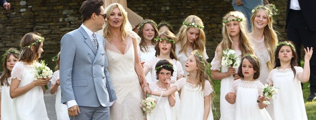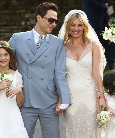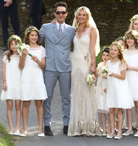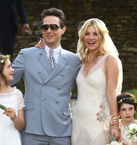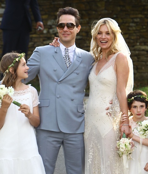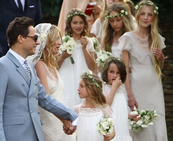 I feel the same way about Kate Moss’s headdress on Friday. Kate Moss married Jamie Hince in the Cotswolds. Look at it from the front, as she arrived at the church, veil drawn over her face, and then again from the back, after the ceremony, being photographed by long-time collaborator Mario Testino, fueling reports that this will be featured in Vogue. Gorgeous, right?