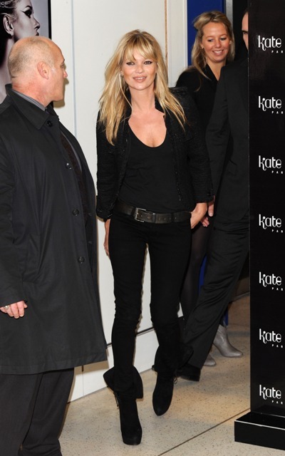 Anyway, as you can see, Kate, who can be foul and uncooperative, was all smiles on the pimp. And I have to tell you, even though she’s a cranked out mess with a deteriorating nose most of the time, that I have always been obsessed with her, and will always be obsessed with her, because Kate Moss was and is a great Model. A real Model. One of the best.