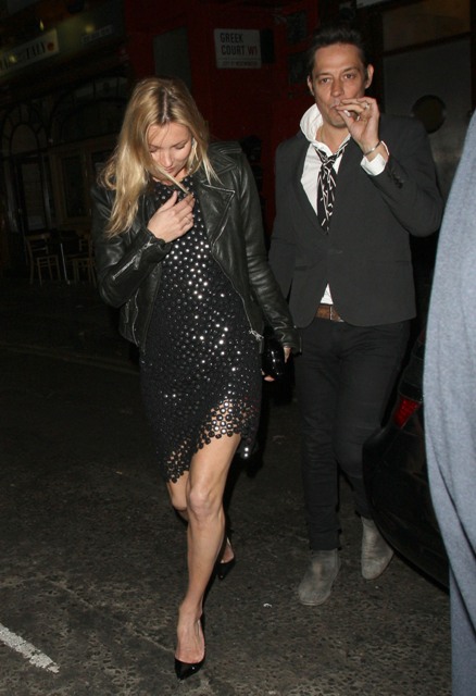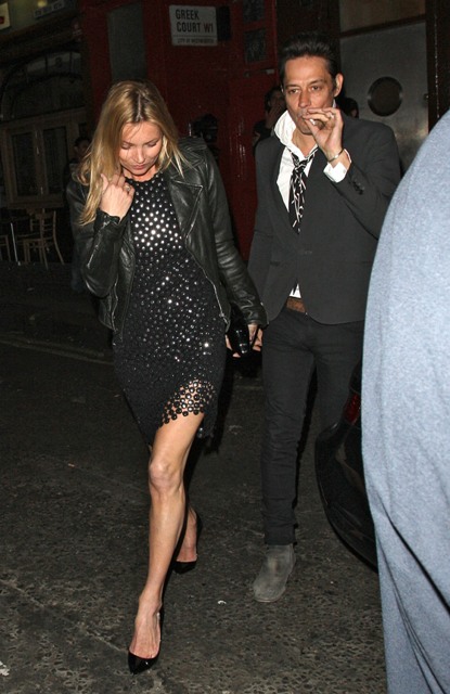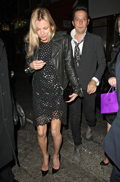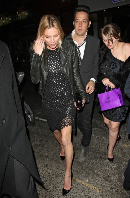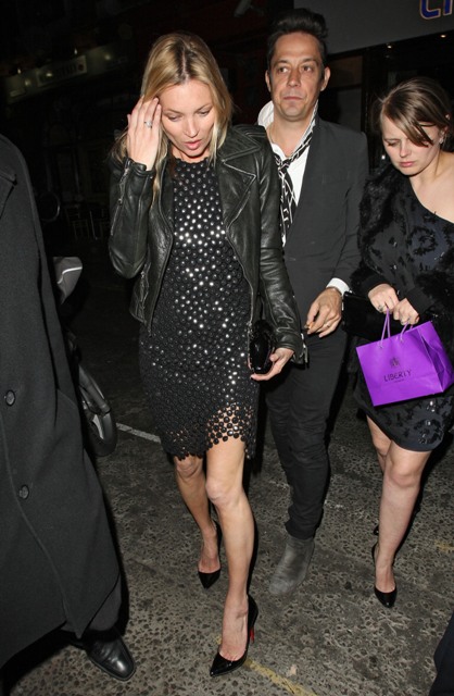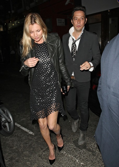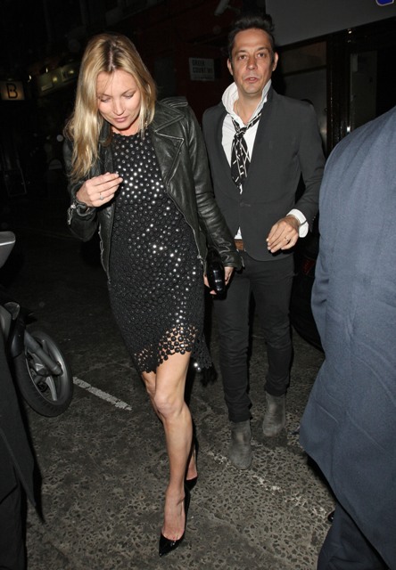 Later on for dinner with husband Jamie Hince, Kate changed into a black dress with a leather jacket.