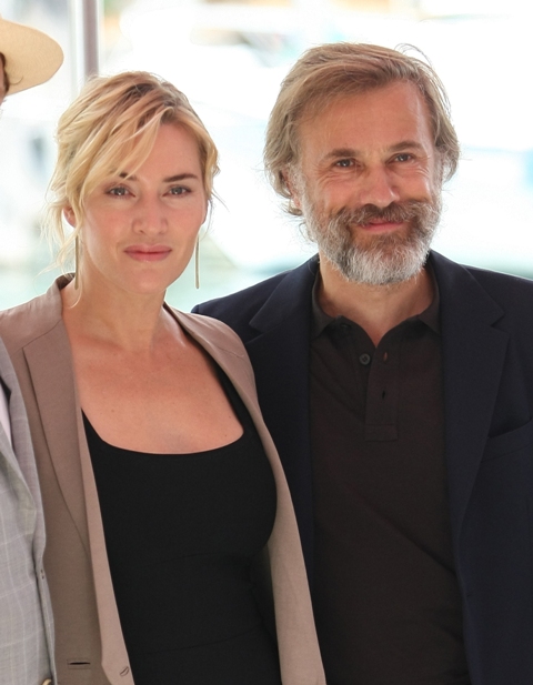 Kate Winslet is in Venice today for Carnage with co-stars John C Reilly and Christoph Waltz. Jodie Foster is shooting a movie and obviously couldn’t make it. This is Kate at the photo call in the afternoon and then at the gala in the evening. And there has been a lot of discussion about her face.