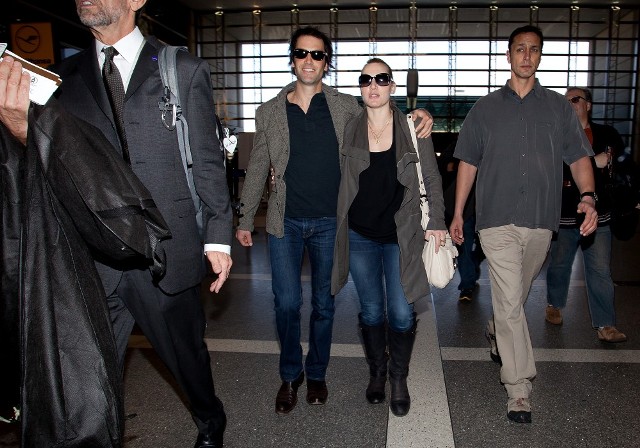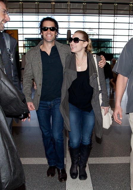 So here we have Kate Winslet, fresh off her Golden Globe win for Mildred Pierce, leaving LA with her boyfriend Ned ROCKNROLL, like twinsies.