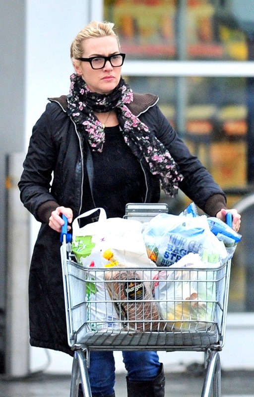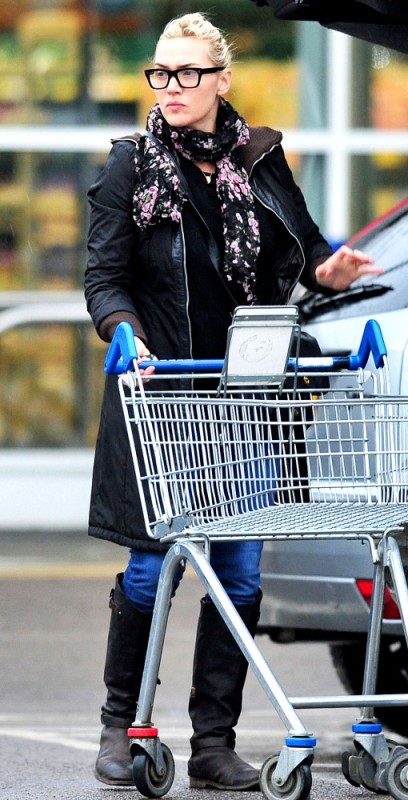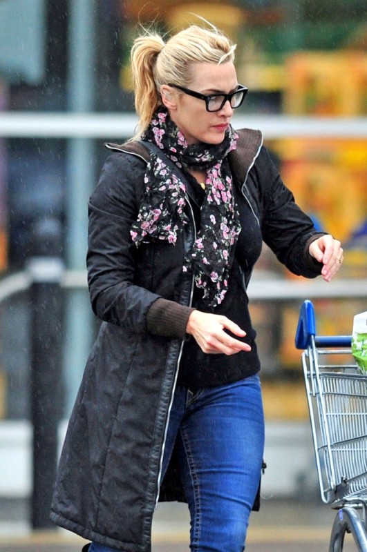 Kate Winslet was photographed in London yesterday shopping at Tesco in black-rimmed glasses wearing her wedding ring, the first time it’s been seen since she was confirmed to have married Ned Rock’nroll late last year. It’s also the first time she’s been seen since it was reported last week that she’s in talks to star in the film adaptation of Divergent which starts shooting this spring in Chicago.