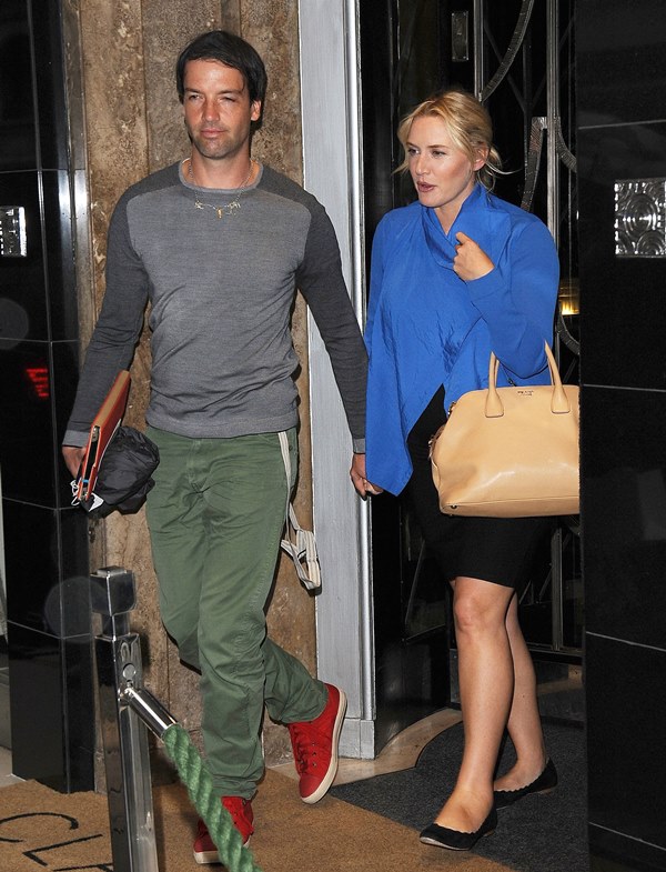 Kate Winslet was photographed in London yesterday with her husband Ned Rocknroll. I still can’t believe that’s a real f-cking name. How does anyone talk to him without laughing?