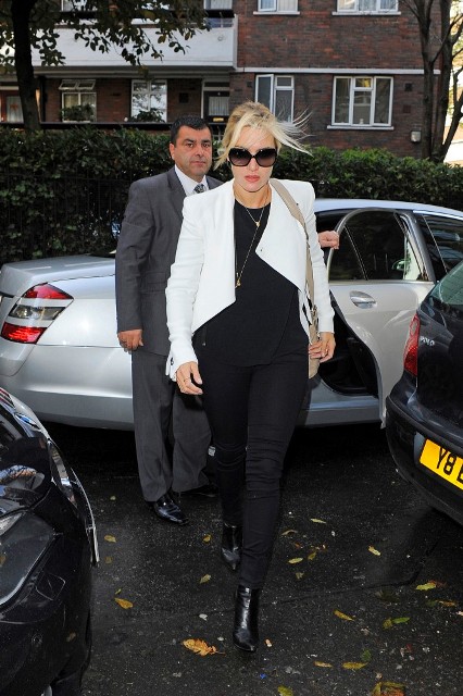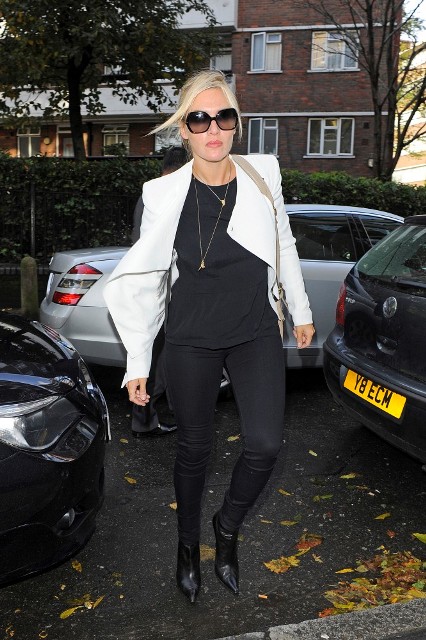 It’s nice to see her. She hasn’t been around in a while. And that’s a great white jacket to wear to a meeting over a simple black tee and jeans.