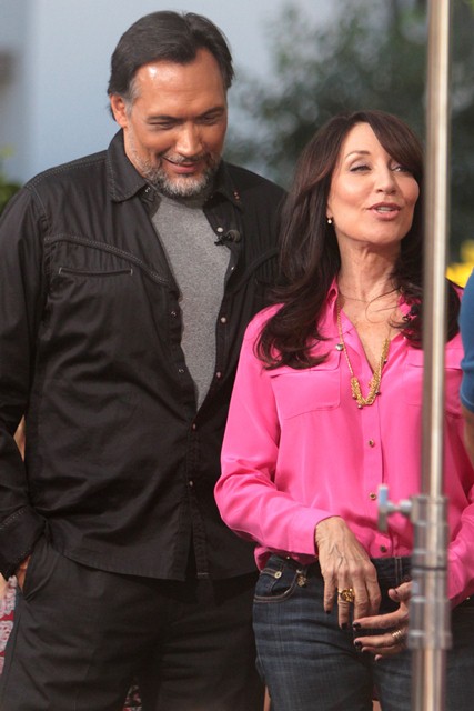 Here are Katey Sagal and Jimmy Smits on Extra the other day promoting Sons Of Anarchy which I finally caught up on last weekend - 3 episodes - and God I love him on the show, so much. I love Gemma and Nero, I love Gemma and Tara, I love Gemma all the time because she’s complicated and crazy and amazing and it’s really too bad she had such a boring, do nothing son who is the weakest part of the show, by far. Weak. So weak that it’s making Charlie Hunnam UNattractive. Yes, it’s possible. It’s possible when he’s playing a character that lets things just happen around him. Jax is the Bella Swan of SAMCRO.