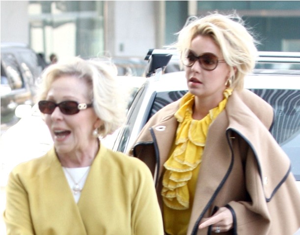 Because there is no end to it. There is no end to how brutal she is with her clothes. How could there be an end to it when her ma is her BFF? Two days ago, Heigl and Heigl-Mother went out to lunch with some ladies. Those ladies look like they’re friends of Heigl-Mother. So Katherine Heigl hangs out with her ma’s friends? Not her own friends? Am I the only one who finds this really f-cking weird? Or am I just the only one who keeps talking about how f-cking weird it is?