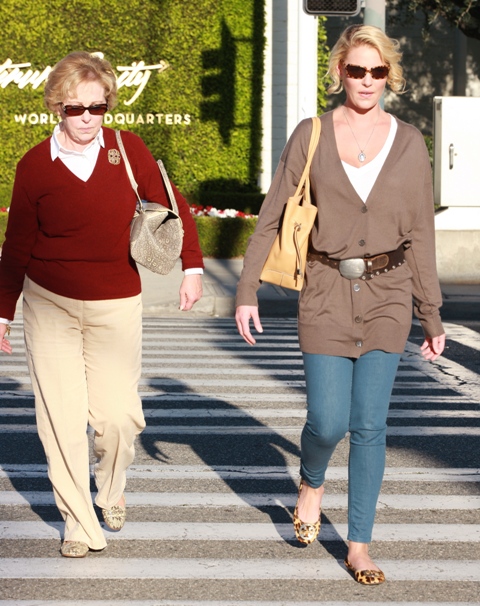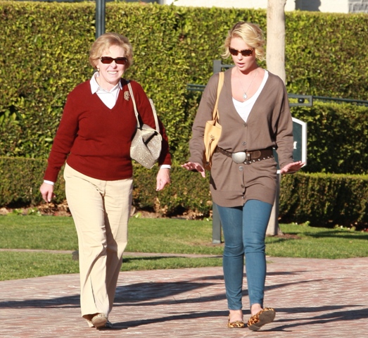 That asstalking ingrate Katherine Heigl was not at the Globes on Sunday. Unlike previous years, Grey’s was not represented at the show because, well, it sucks. The second half of 2008 was very, very quiet for Heigl. After shooting off her mouth about her writers’ undeserving plotline, she smartly disappeared for while, did not go shopping every day with the paps, and has since remained very much undercover, celebrating her first year anniversary recently, collecting a meaningless People’s Choice Award and, yes, spending time with mom, her manager.