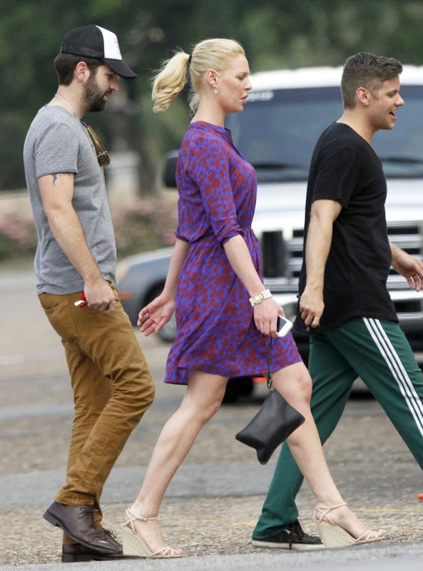 Here’s Heigl in New Orleans the other day with her husband Josh Kelly. Apparently she’s there shooting a movie called North Of Hell, described as a “dark comedy”. Heigl’s last movie was The Big Wedding released a month ago, one of the worst reviewed films of the year. It’s not entirely her fault. And she barely promoted it. But it did continue her streak of sh-tty projects. It’s been, Jesus, it’s been FIVE YEARS of sh-tty projects.