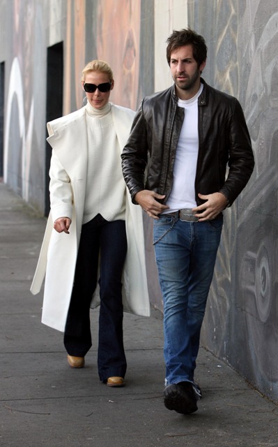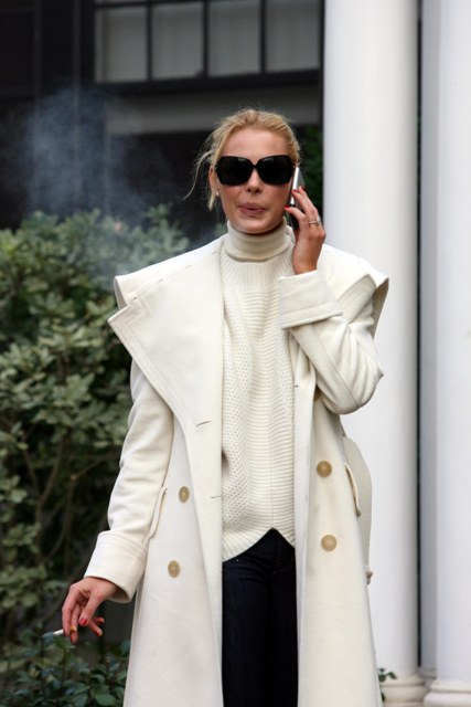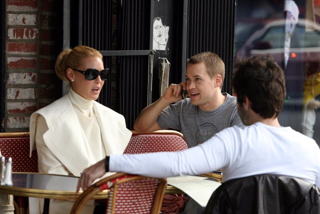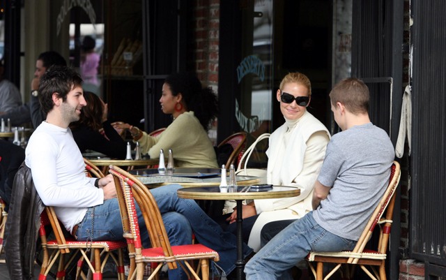 And so does Katherine Heigl. Even though it was warm enough yesterday to have lunch outside, for TR Knight to enjoy his meal in only a short sleeved tee, Katie dressed for New York in November. White, of course.