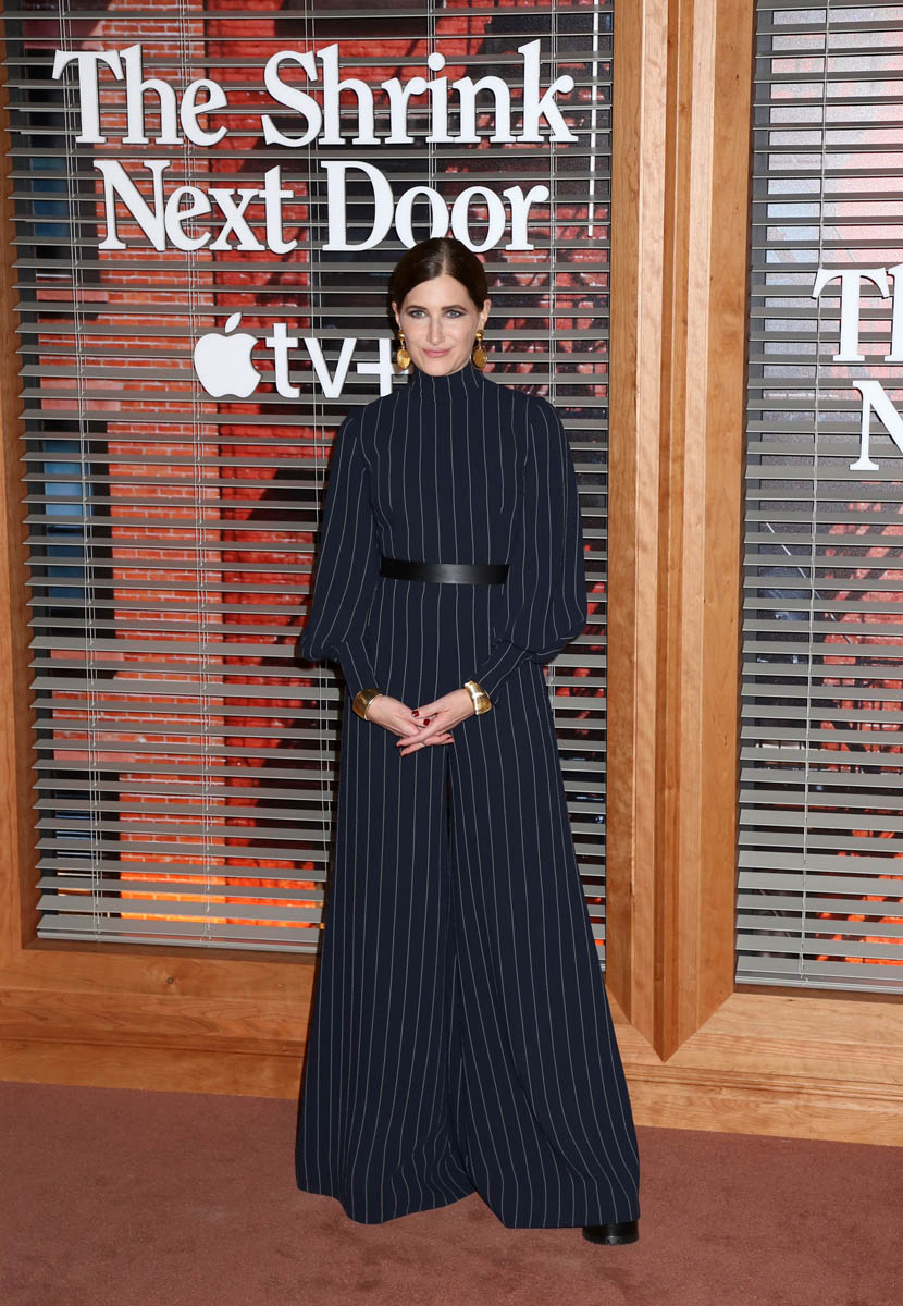 Attached - Kathryn at the New York premiere of The Shrink Next Door last week .
