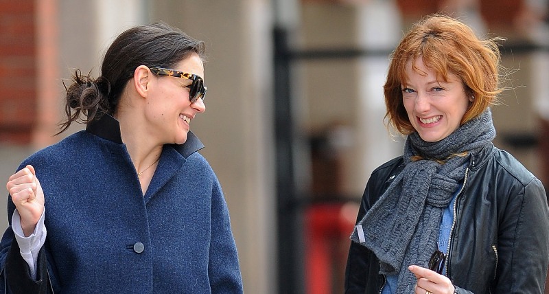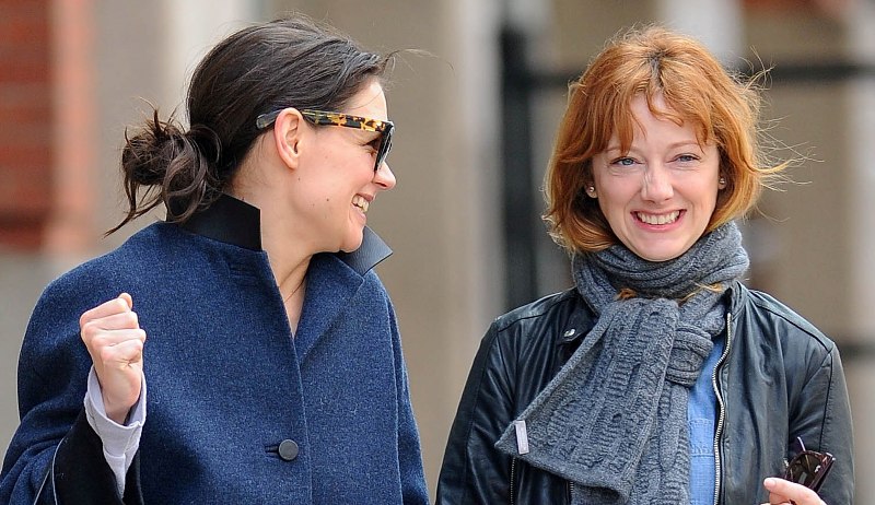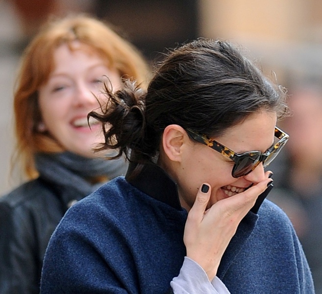 What a regular week for good ol’ ordinary human lady, Katie Holmes! First, she went to a basketball game, with a mysterious yet regular looking YET attractive man (it turned out to be her agent). She seemed to enjoy herself, she made expressions, ingested diet coke, and stuck her tongue out and said “ahhhhh”, you know, all the normal basketball stuff. Well now it seems she’s become so normal that she’s even got her very own gal pal. Not just any gal pal though -- she’s scored the universe’s favourite best friend, Judy Greer.