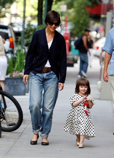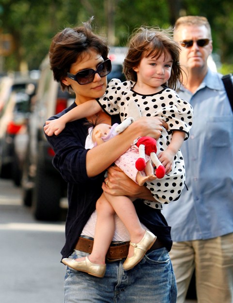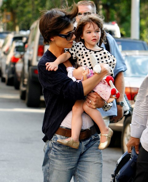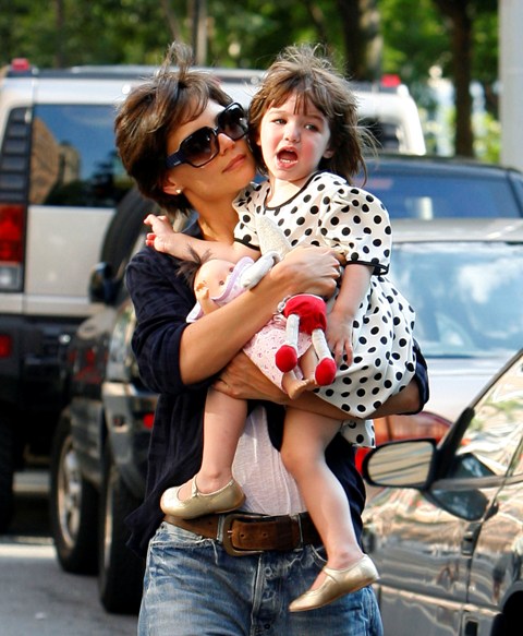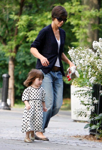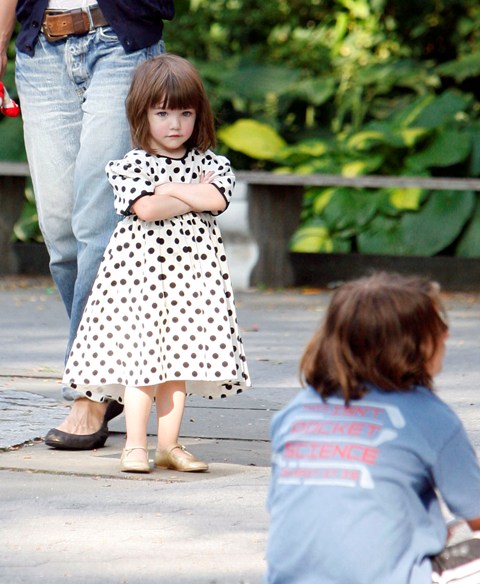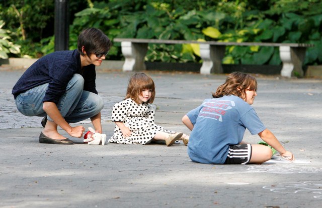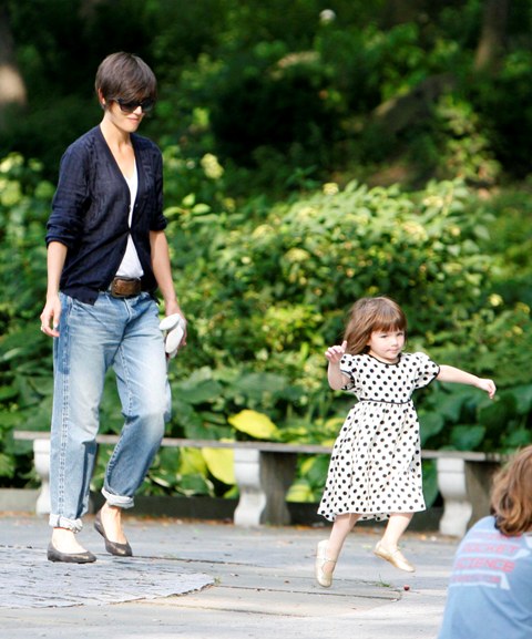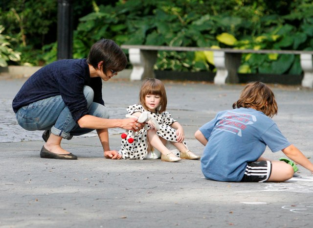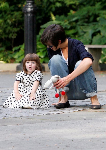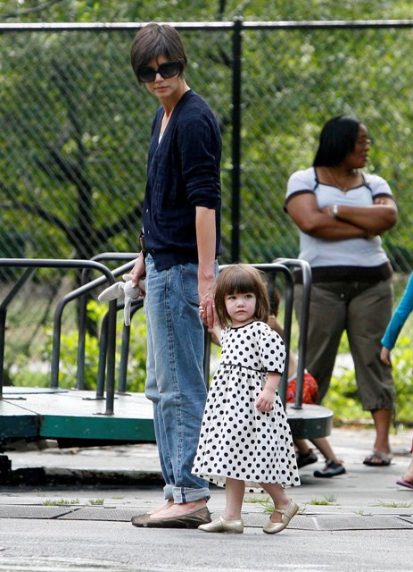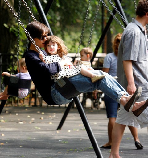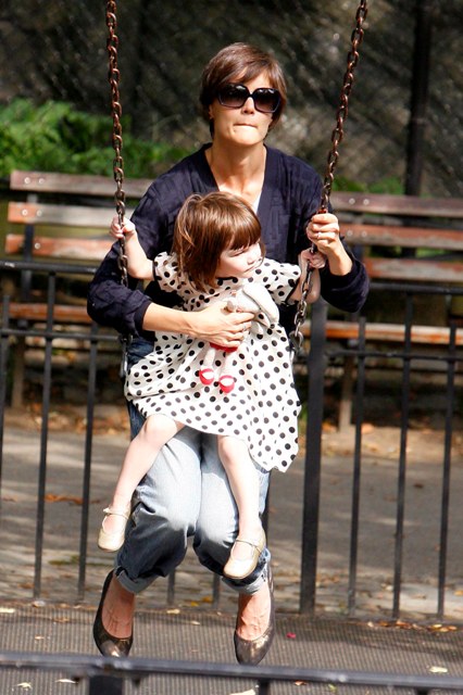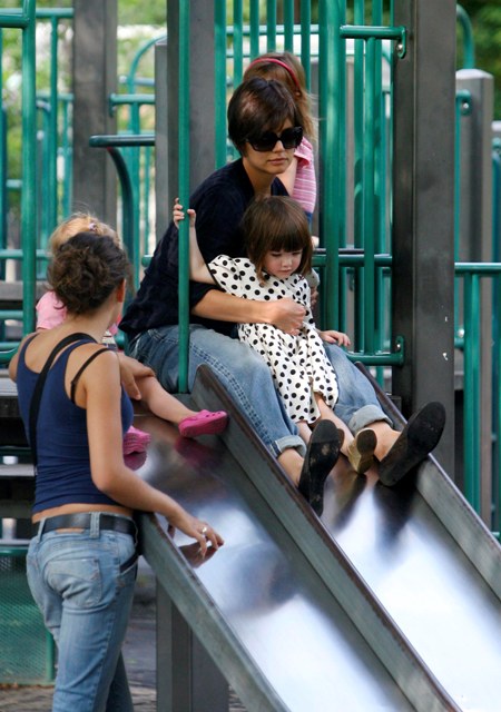 Aside from the wardrobe issues however, Katie Holmes was like a regular yummy mummy, chasing her baby, going down the slide, on the swings…and there was some drama too.