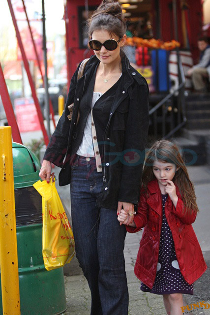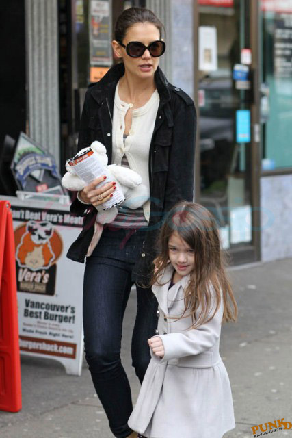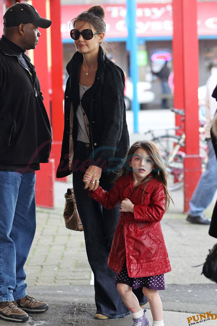 Katie Holmes and Suri were in Vancouver for the weekend. Granville Island Public Market seems to have become a new favourite spot for them to hang out. My in-laws live two blocks from there. And we’re in the neighbourhood too. It is indeed a great place for kids. Also there’s a great meat shoppe that sells the best Maui ribs I’ve ever put on the grill.