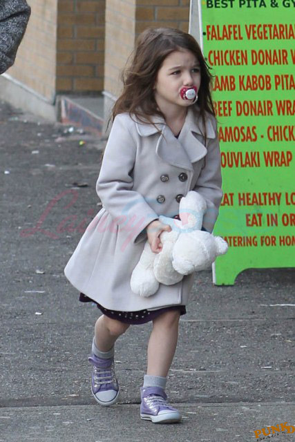 Anyway, as you can see, unlike the Chosen One Shiloh Jolie-Pitt, Little Sci Suri Cruise prefers to wear her hair long. Very long. I would have killed to have hair this long when I was younger. By force it was short and a bowl for me. Because that, frankly, is easier on parents. Suri seems pretty indulged though which actually isn’t unique to the celebrity child experience, at least not from what I’ve observed out there among civilians. Remember Duana’s open letter to parents with children? Not saying No to The Dream can be an indulgence. “I want to give my child the freedom to pursue her passion.” At the age of 8? In that sense then, Suri’s not so different from the non-famous ones. Having said that, I can’t wait for you judgy moms to start going off about her soother. Last time I heard from the judgy moms it was about Matthew McConnaughey taking his baby girl to the beach and not giving her some kind of swimming diaper, or whatever it is that they’re called.
