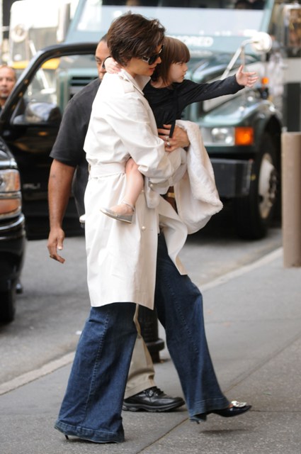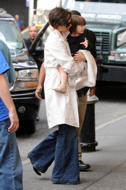 In advance of her big debut, Katie Holmes has remained focused in New York, shunning fashion week entirely to devote all her energies to rehearsals and to caring for Little Sci in the evenings. Amazingly enough, Tom Cruise has remained extremely undercover. Few sightings, fewer gratuitous appearances.