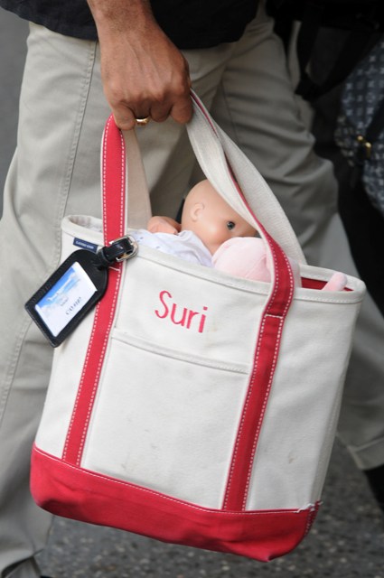 Here she is accompanying mom to the theatre as a minion totes her monogrammed bag. Cute, non?