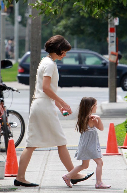 The History Channel on the other hand – check out Katie Holmes on the Toronto set yesterday as Jacqueline Kennedy. That’s amazing. Now she certainly looks it, remains to be seen whether or not she can act it. Having said that, I have every confidence that KatE’s acting is better than her dancing. And, if they can deliver on the hype, she might have some salacious material to work with.
