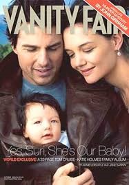 You’ll recall, this is also when Tom was calling her “Kate”, even though she was “Katie” to everyone else. Katie defends Tom passionately in this piece. She’s surrounded by her parents too, so no one here is isolated. Taken on its own, you almost can’t believe that this relationship imploded six years later. And not only that, it’s Vanity Fair. The Vanity Fair cover featuring Tom, Katie, and Suri was for the October 2006 issue. In its October 2012 issue, 3 months after Katie ninja’ed out of her marriage, this is what Vanity Fair led with: