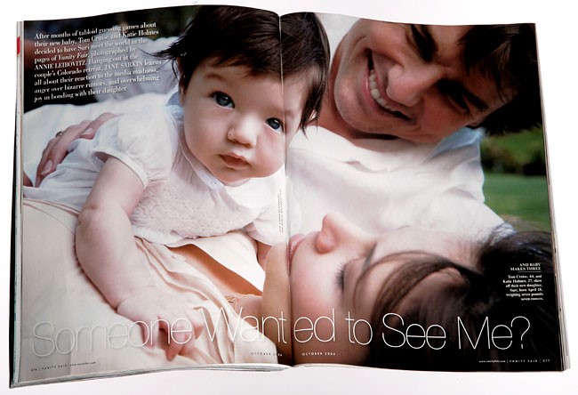 That headline “Someone Wanted to See Me” directly addresses all the conspiracy theories about why she hadn’t been seen publicly. Tom and Katie invited Vanity Fair to their home in Telluride, along with Annie Leibovitz, to photograph them as a family and talk about their lives together.