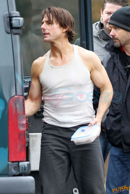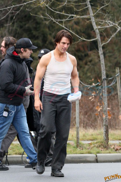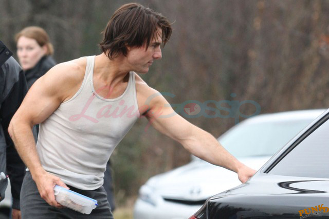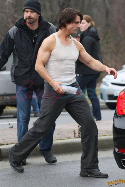 He was shooting in Vancouver yesterday all sweaty and ripped and manly. Looked good. Which, I guess, is why we’re seeing this. I’m disappointed he’s not wearing hidden heels though.